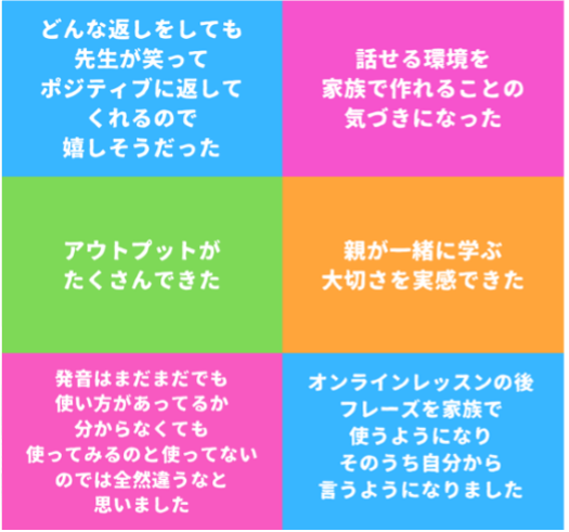 ・親子で英会話を通してコミュニケーションの量が増えた。