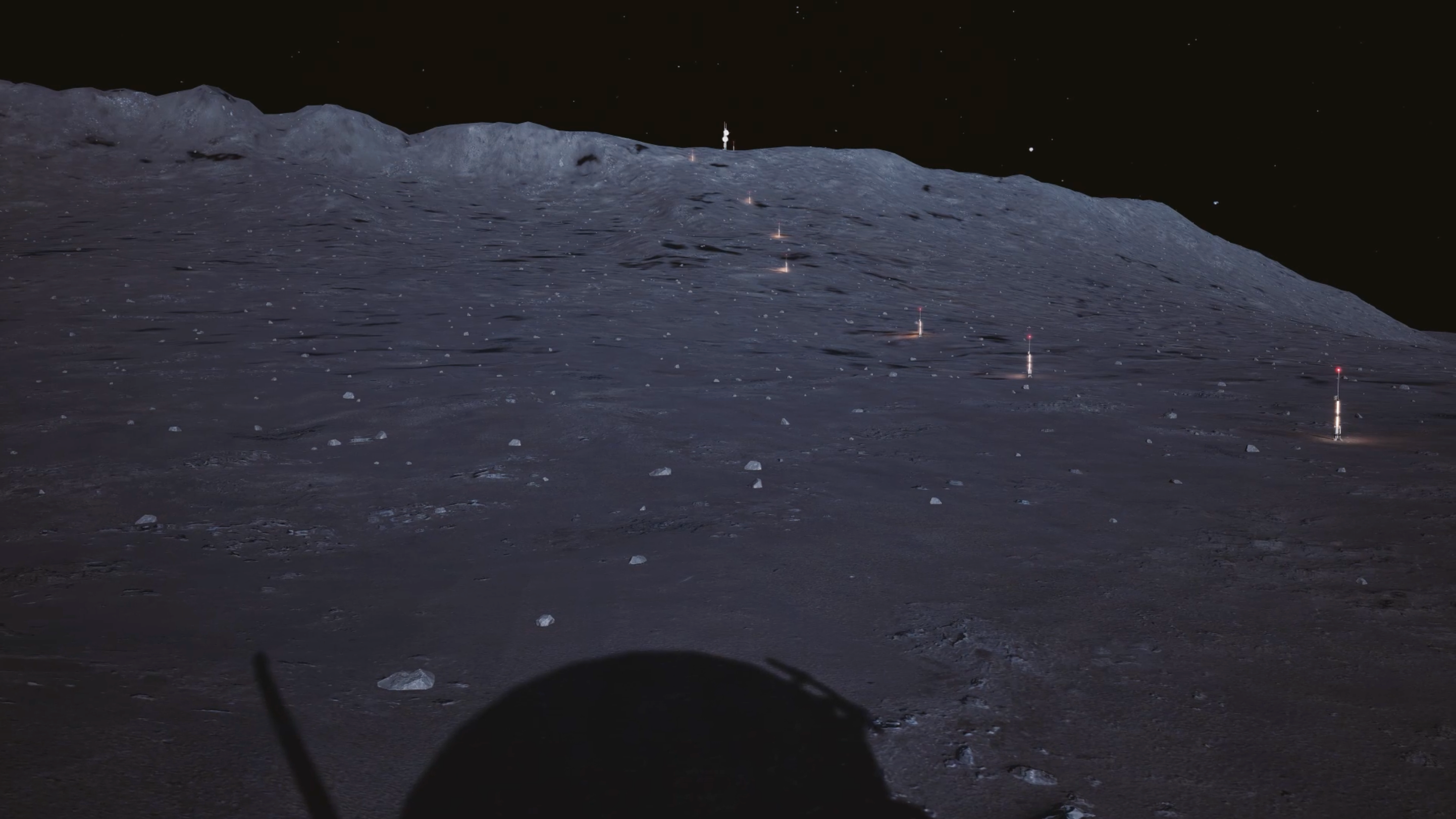 今回は当社デジタルツイン技術を地球外の宇宙空間にも応用し、宇宙環境をデジタル空間に再現する「宇宙デジタルツイン」の開発を実験的に行いました。衛星データを活用した月面環境の再現や、地球の周辺環境の再現を行い、月の1/6重力や宇宙の無重力を反映した擬似宇宙空間でリアルタイムに動き回ったりシミュレーションを行ったりすることができます。