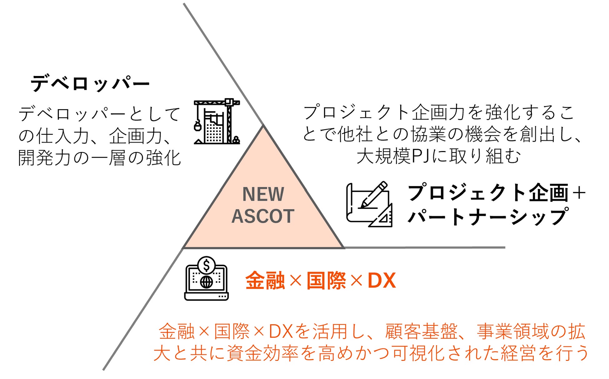 アスコットは3つの成長ドライバーを掲げており、うち「金融×国際×DX」は、完全に新しい領域ではあるものの、マネジメント直下で体制を整備し、リソースを投入して推進しています。