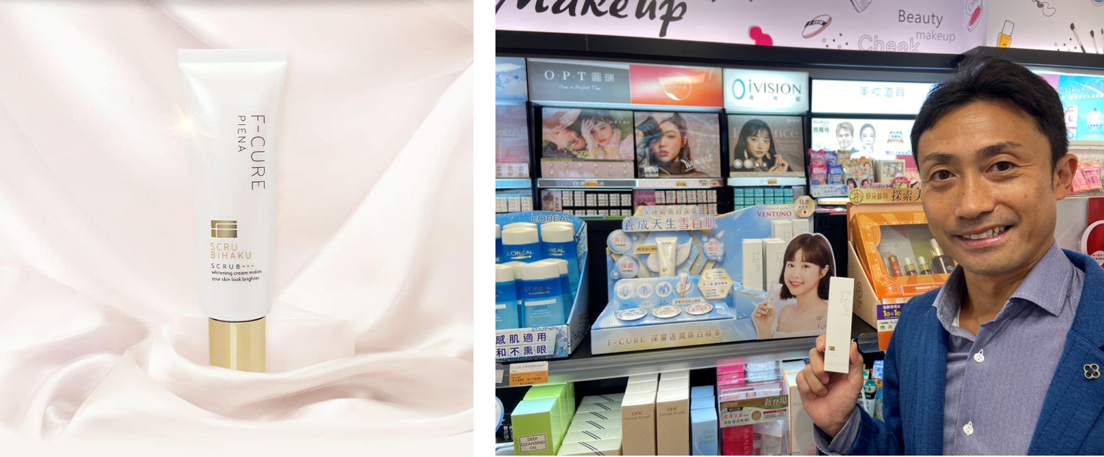 こうした状況を踏まえ、当社は、提供する素肌美人になれる薬用美白クリーム「エフキュアピエナ スクラビハク」を11月25日(金)から台湾の大手ドラッグストアチェーン「康是美(コスメド)」の約300店舗にて販売を開始いたします。