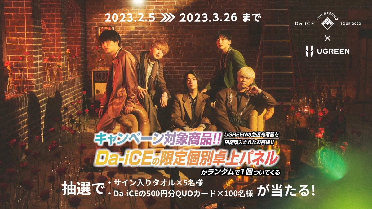 今回は「Da-iCE FUN MEETING TOUR 2023」の開催を記念して、UGREEN対象製品を店舗で購入すると「Da-iCEの限定個別卓上パネル」がついてきます。(先着5,000名)