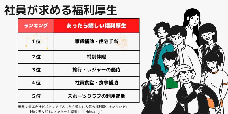 働き手が求めている福利厚生サービスの 堂々1位は、家賃補助や住宅手当などの“住居”への支援です。