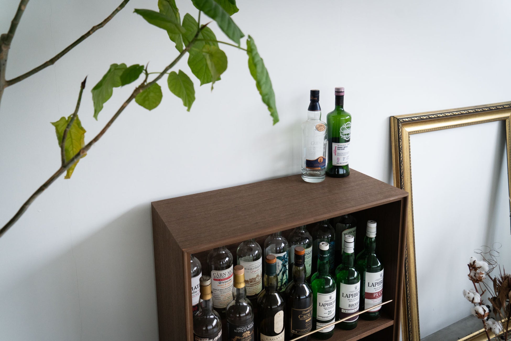お酒が好きで買い溜めてしまったボトルコレクション。集めたは良いけれど収納スペースに困りがちです。そんな悩みを持った方に、お部屋の省スペースで最大約42本収納可能で、バーの様に美しく魅せるコレクション棚となるバーシェルフがおすすめです。