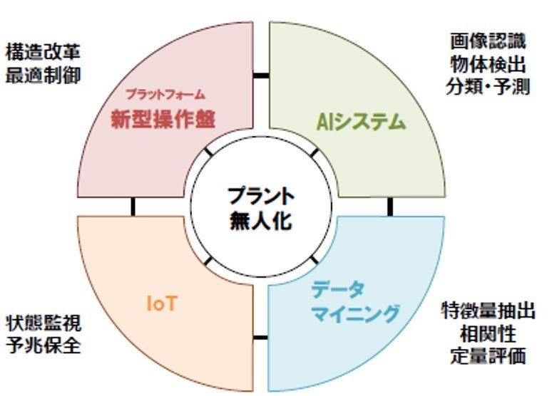 さらに、「IoT」によってプラントメーカーにしか取得出来ない「プラント稼働データ」と「AI」の認識・分析・制御を組み合わせることで、最適コントロールで付加価値を生み出し、お客様のDX・スマートファクトリー化に貢献してまいります。