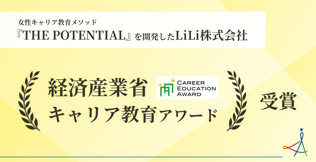 女性のポテンシャルを最大化する人材開発カンパニーであるLiLi株式会社(所在地:東京都港区、代表取締役:廣岡絵美)の提供する、未来のキーパーソンのための女性キャリア教育メソッド『THE POTENTIAL』が、経済産業省のキャリア教育アワードを受賞致しました。