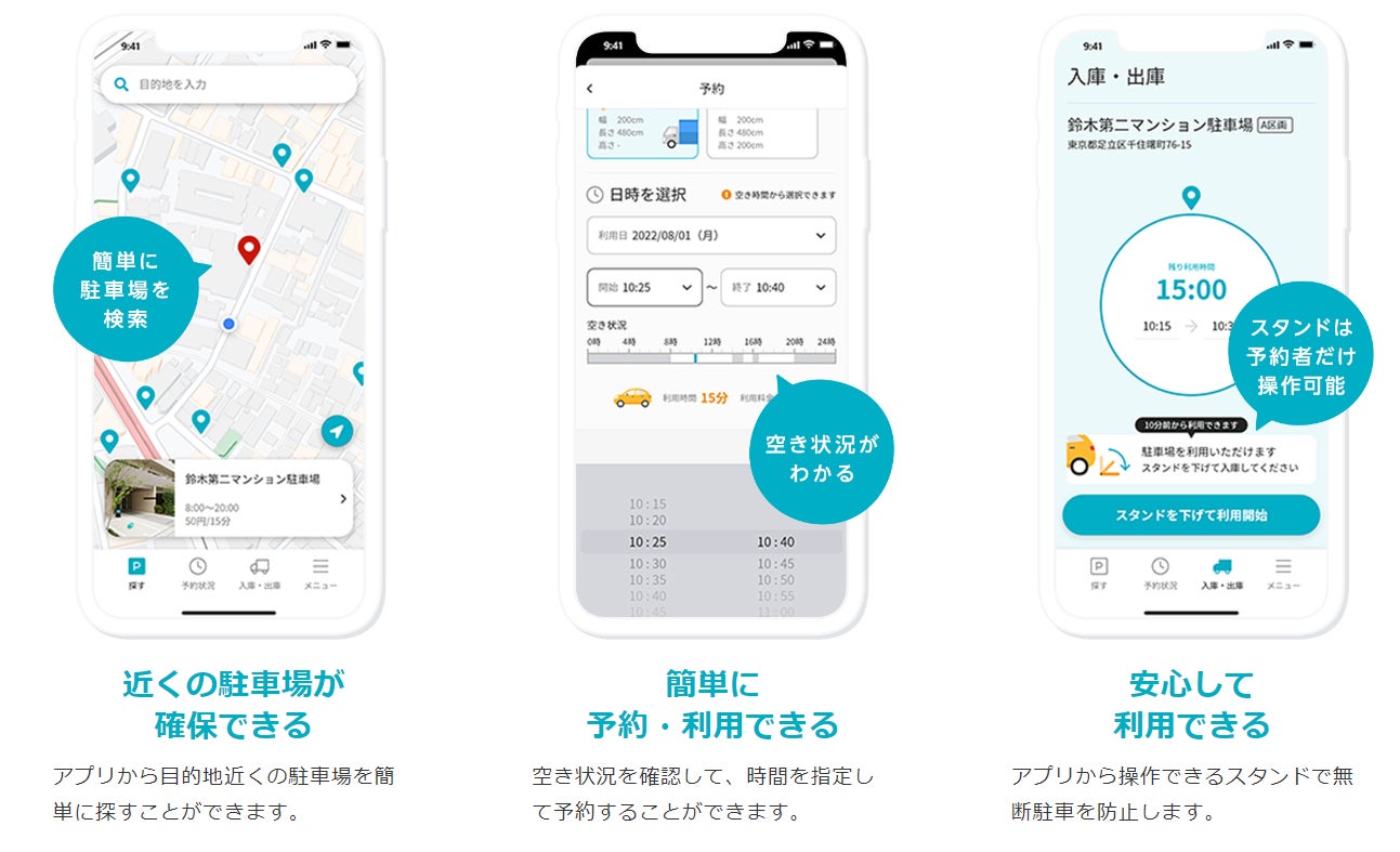 ・迷惑駐車防止:専用スタンドで予約者以外の駐車を防止。