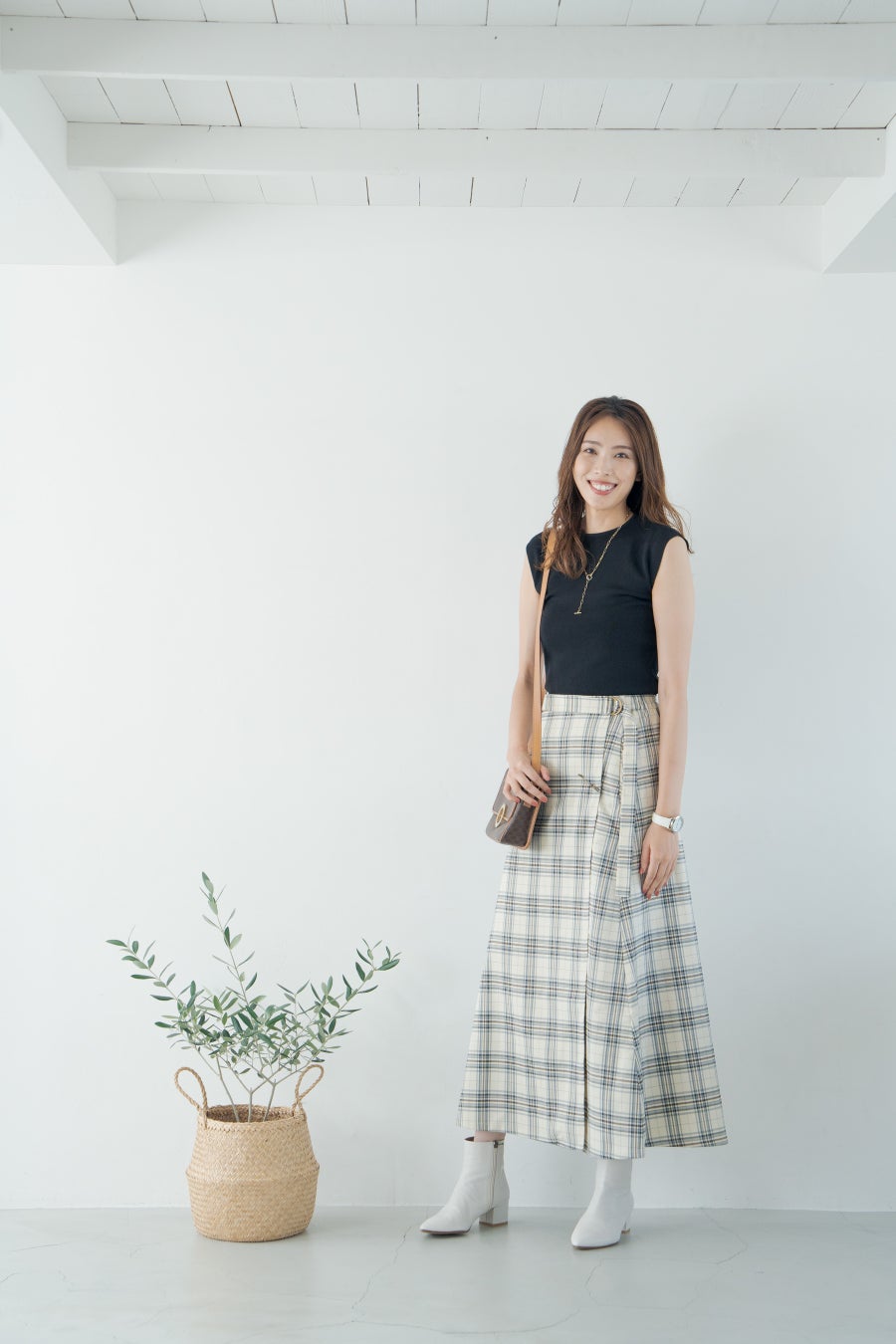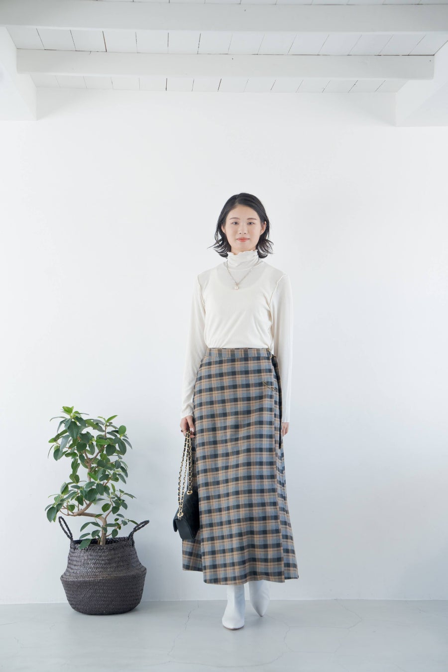 どんなトップスアイテムにも相性抜群のため、カジュアルにもクラシカルにも、レディにも見せられるアイテム。高身長女性の得意なマニッシュに着こなすのもおすすめです。また、合わせる靴によっても雰囲気を帰られるのも魅力の一つ。※キルトピン付属。巻きスカート仕様。