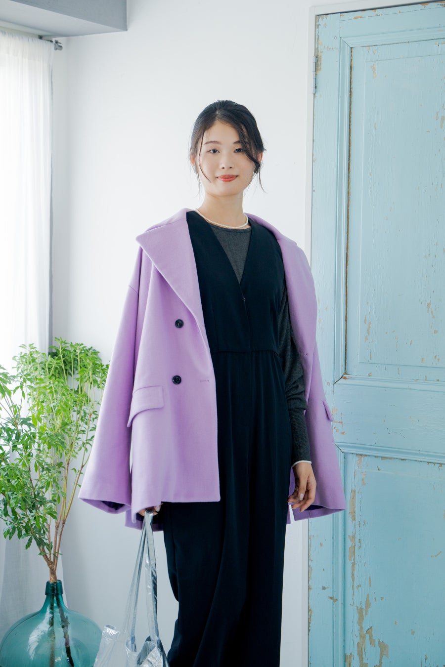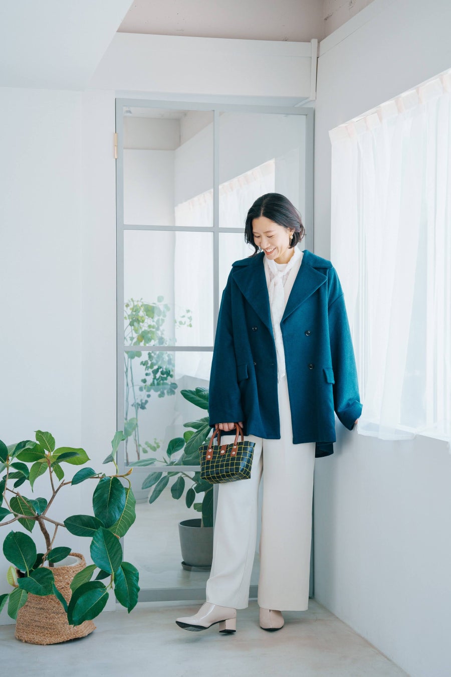 これからの季節に嬉しいやや薄手のウール混コート。高身長女性がさらりと羽織ってもオーバーサイズになる絶妙なサイズ感にて、大人の余裕とこなれ感を演出することができます。