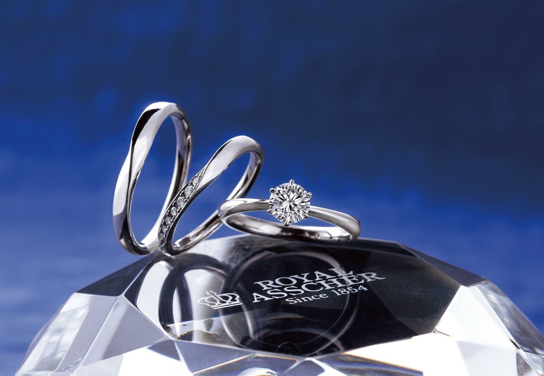 ロイヤル・アッシャーのダイヤモンドは、白く高貴な輝きが特徴です。世界で最も純白に輝くといわれ、透明感あふれるダイヤモンドが魅力です。