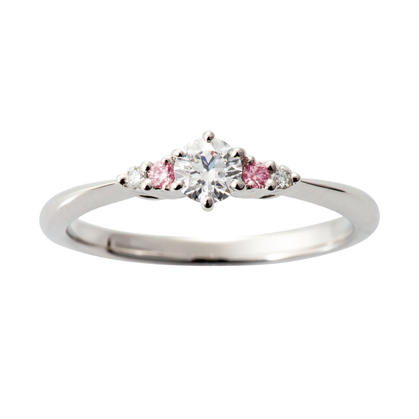人気のストレートデザインのメレダイヤモンドに、大変希少なピンクダイヤモンドを2石も使用しています。