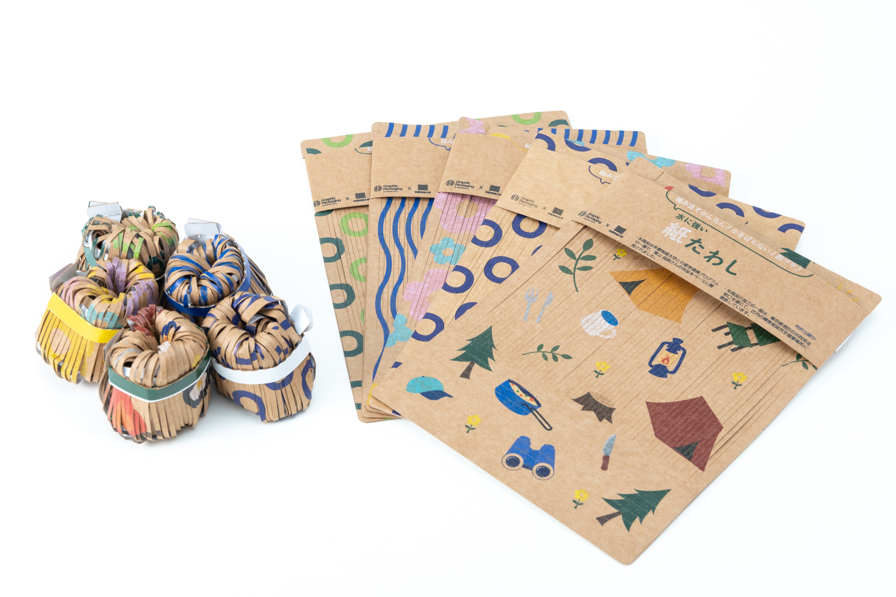 近年、世界的な社会課題として、CO2排出による地球温暖化やプラスチックごみなどの環境問題に関心が集まっています。当社でもサステナブルな社会の実現を目指し、自社製原紙を使った新たな商品を模索すべく多摩美術大学と産学連携の共同研究を行いました。共同研究の中で、自社製アクアコート原紙の耐水性の高さを生かし、水を使う場面で使える作品を検討した結果、学生の創造豊かな発想よりイノベーティブなアイデアが生まれました。その作品の一つが「紙たわし」です。調理器具や野菜の洗浄のほか、さまざまな道具の手入れや掃除など幅広い用途で使用できるたわしに着目しました。