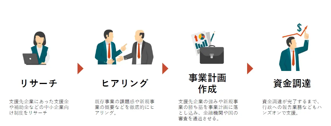 本補助金では、弊社のような経済産業省認定経営革新等支援機関(通称:認定支援機関)と共に事業計画を策定することが申請条件となっています。