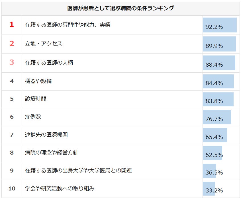 受診先の決め手は?医師が患者として選ぶ病院の条件ランキング―医師1,662名へのアンケート調査より―