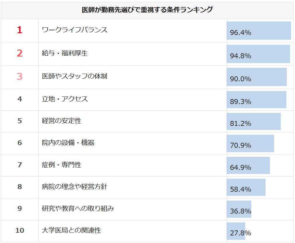 「こんな病院で働きたい!」医師に選ばれる病院の条件ランキング―医師1,662名へのアンケート調査より―
