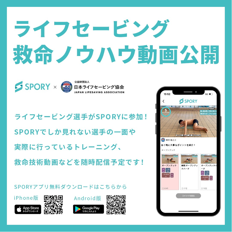 アスリートの持つノウハウを活用したヘルスケアアプリ「SPORY」を提供する株式会社スポリー(代表取締役社長:丸山和也、以下 スポリー)は、公益財団法人日本ライフセービング協会(=JLA、理事長:入谷拓哉、以下 日本ライフセービング協会)との連携を開始することを報告いたします。