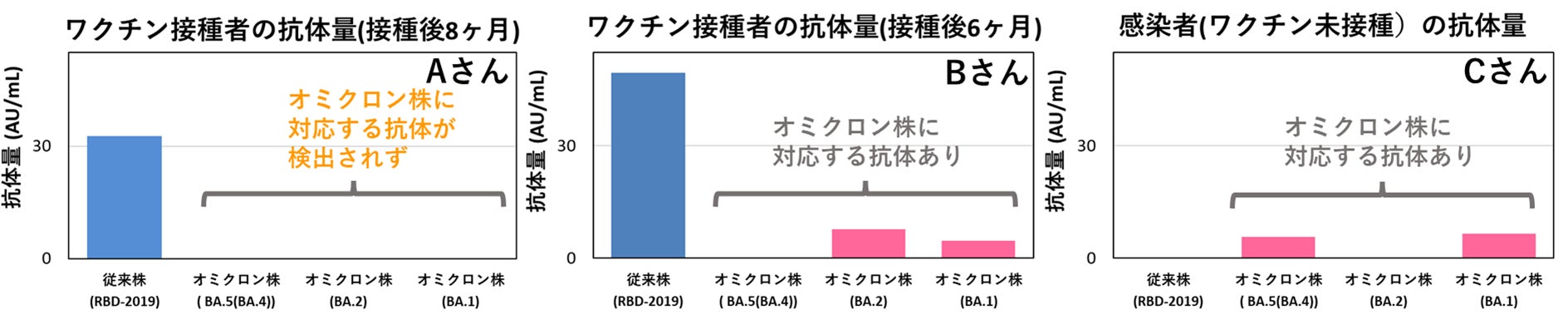 ワクチン接種を検討されている以下の3名の方について、抗体量(抗体価)を調べました。