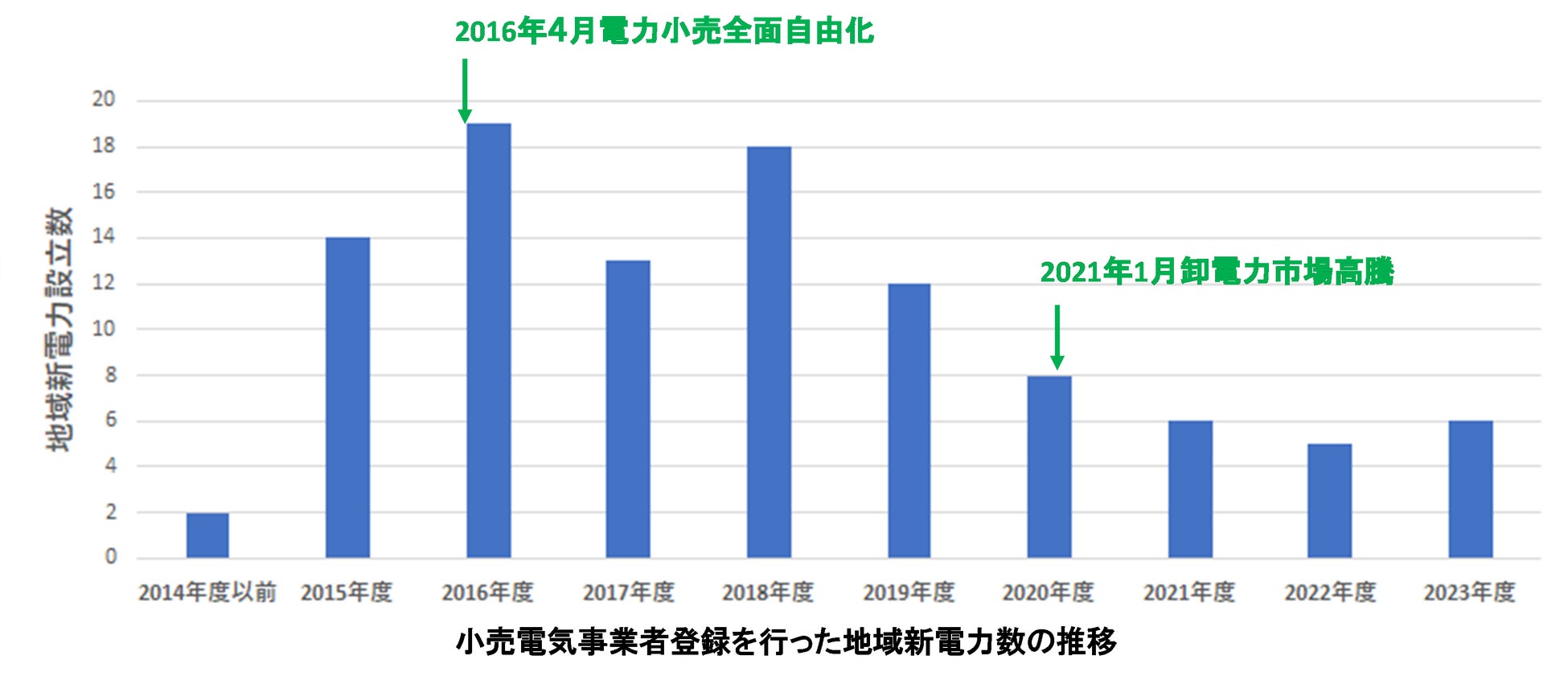 ・2015~2019年度に設立が相次いだが、2021年1月の卸電力市場高騰以降は減少傾向。