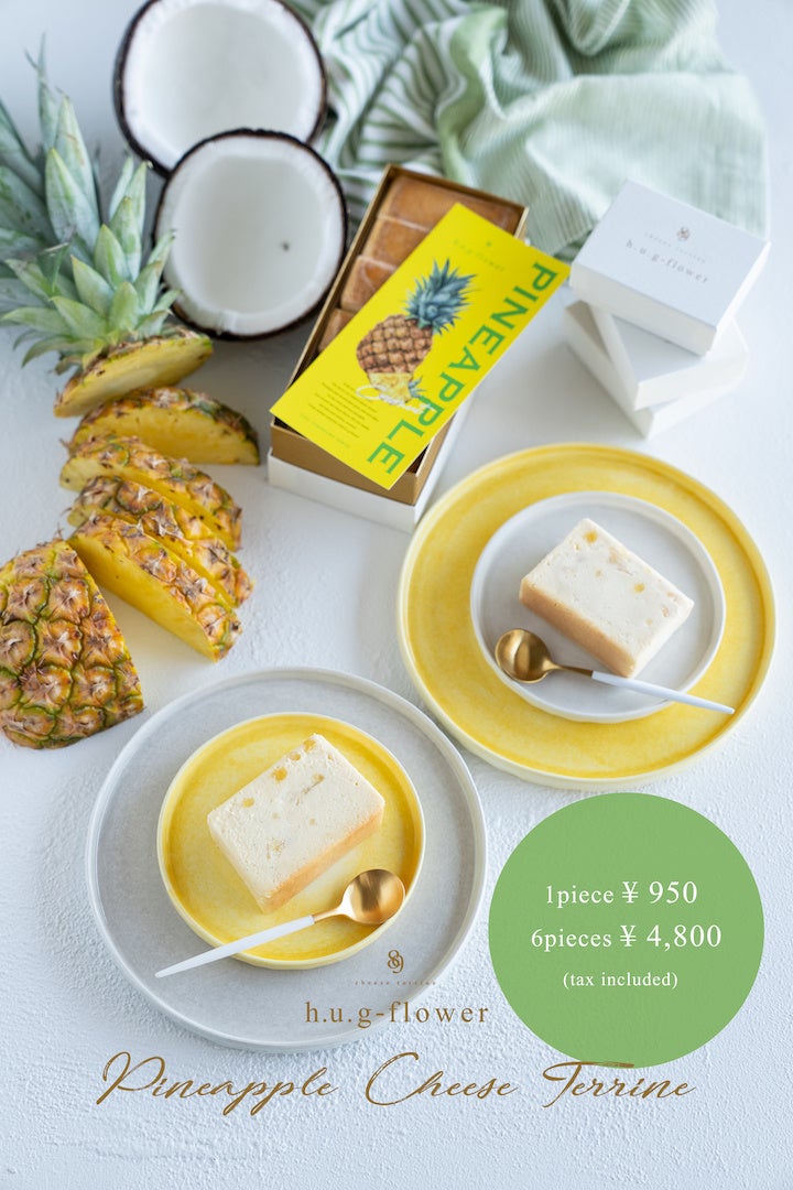 1日2800本が完売したグルテンフリーチーズテリーヌ専門店【h.u.g-flower(ハグフラワー)】では、9/3より「パイナップルチーズテリーヌ」をラングドシャで包んだ『パイナップル黒糖サンド』を販売します。