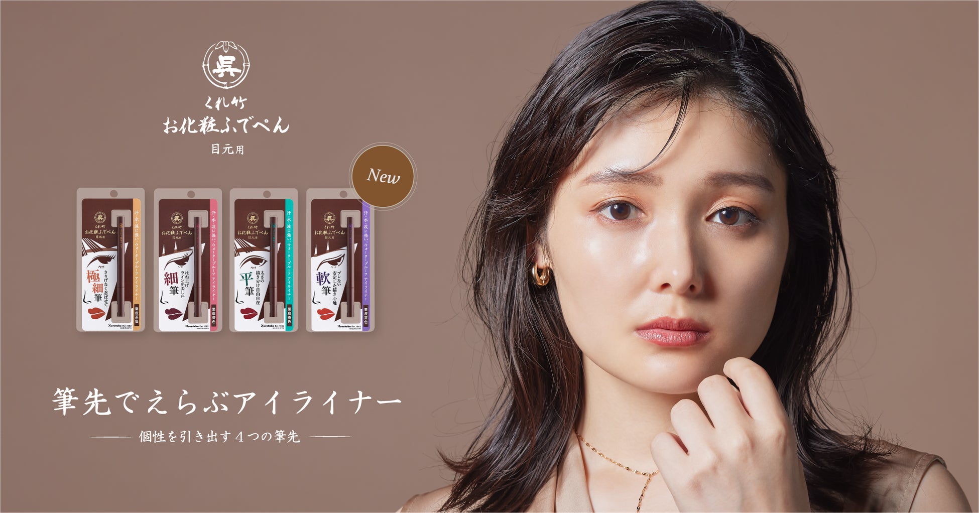 筆ぺんが書き手のニーズに合わせて様々な筆先を展開してきたのと同様に、「アイライナーも描き心地や使い勝手に合わせて様々な筆先が選べるべきではないか」、この想いを軸に、アイライナー「くれ竹 お化粧ふでぺん 目元用」の開発に至りました。
