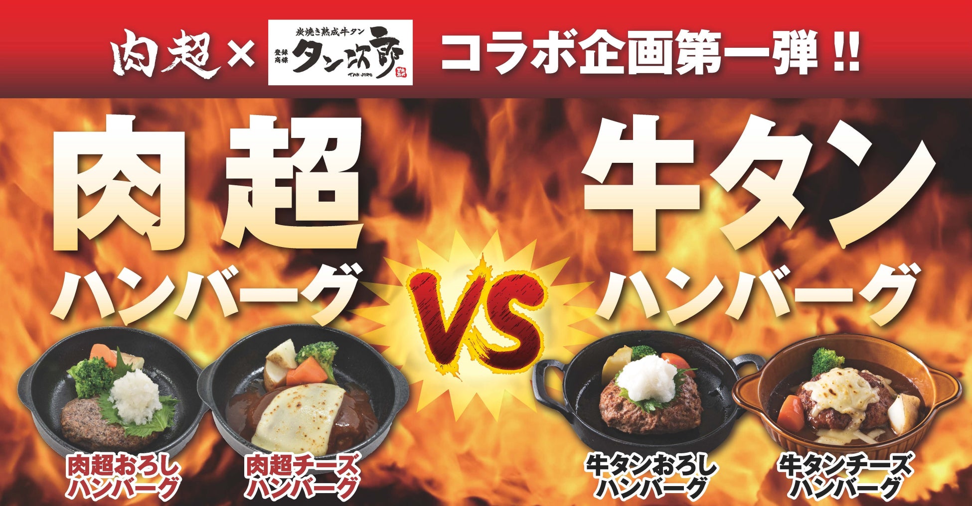 タン次郎(上記2店舗)では「肉超ハンバーグ VS 牛タンハンバーグ」の食べ比べとなります