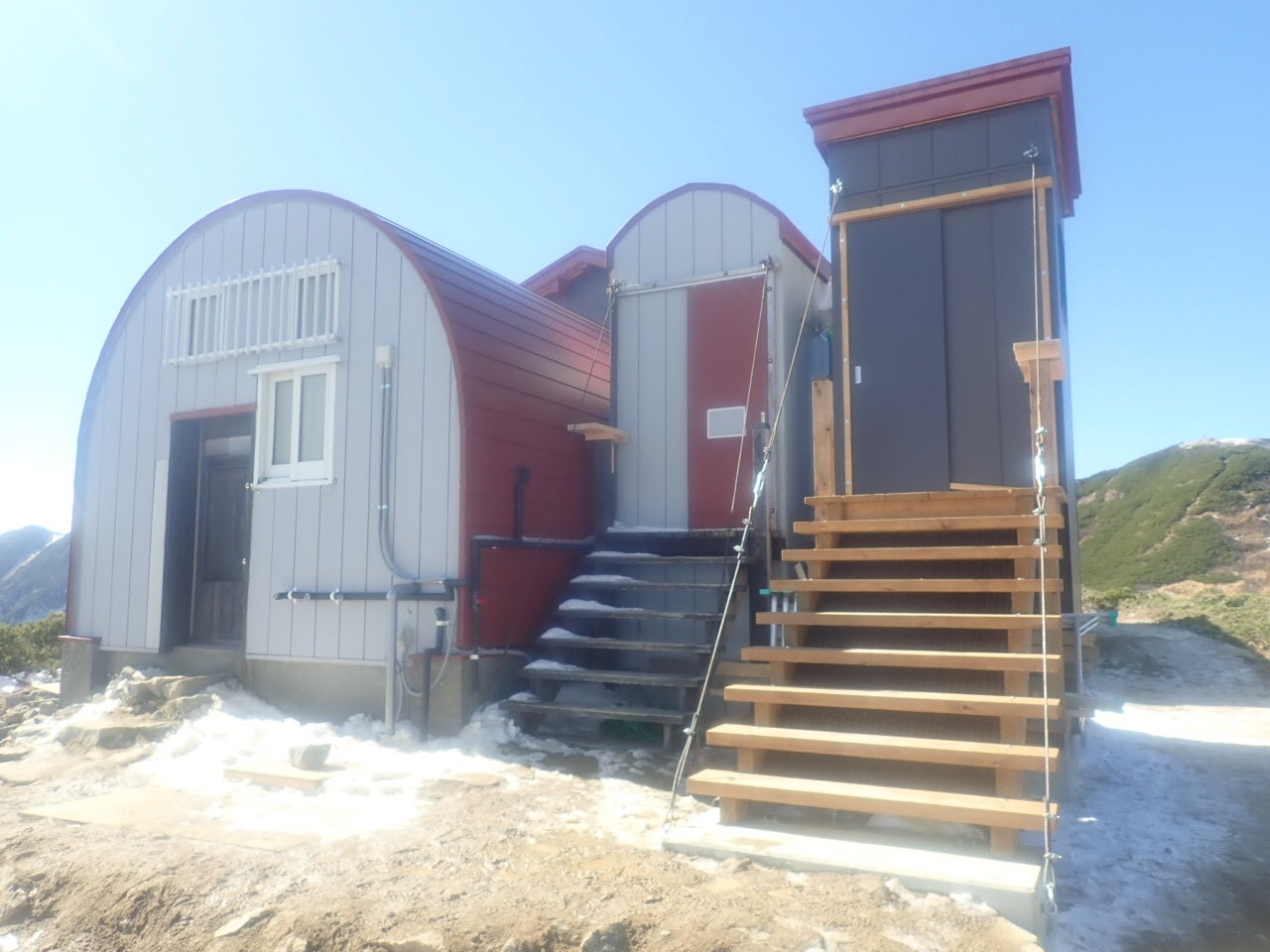 中央アルプス宝剣岳と空木岳のほぼ中間に位置する避難小屋を、この度の改修工事により増改築して整備された山小屋が「檜尾小屋」です。既存の避難小屋に木造平屋の建物を増築し、登山シーズンに管理人を配置するための設備や乾燥室、洋式トイレ等が整備されました。小屋と檜尾岳山頂の中間には緊急時にヘリポートとして利用できるテント場も新設されています。
