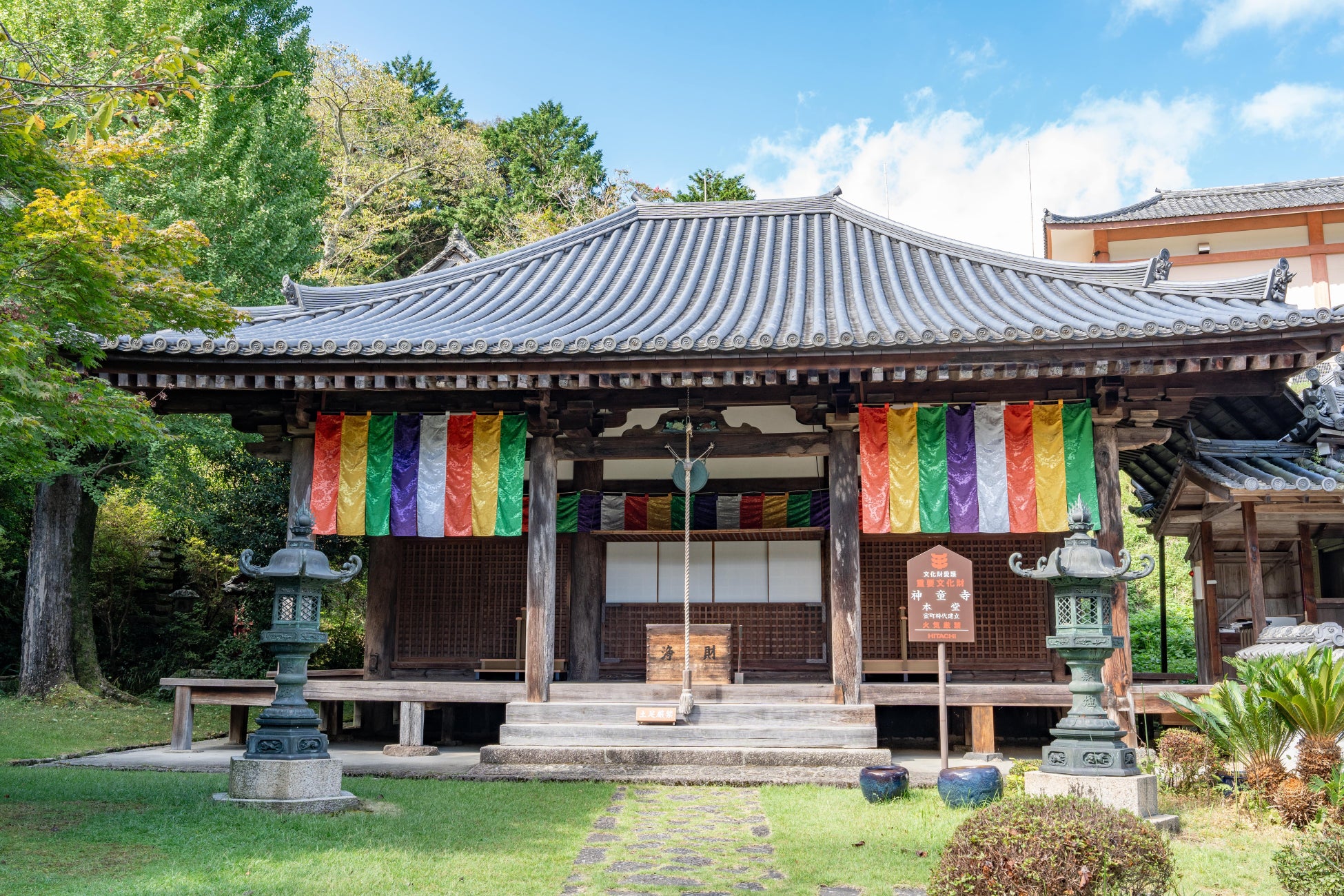 寺の縁起では、天平元年(729年)に聖武天皇の勅願で建立されたと伝えられ、本堂に安置されている阿弥陀如来坐像は、高さ3メートルに迫る丈六の坐像。