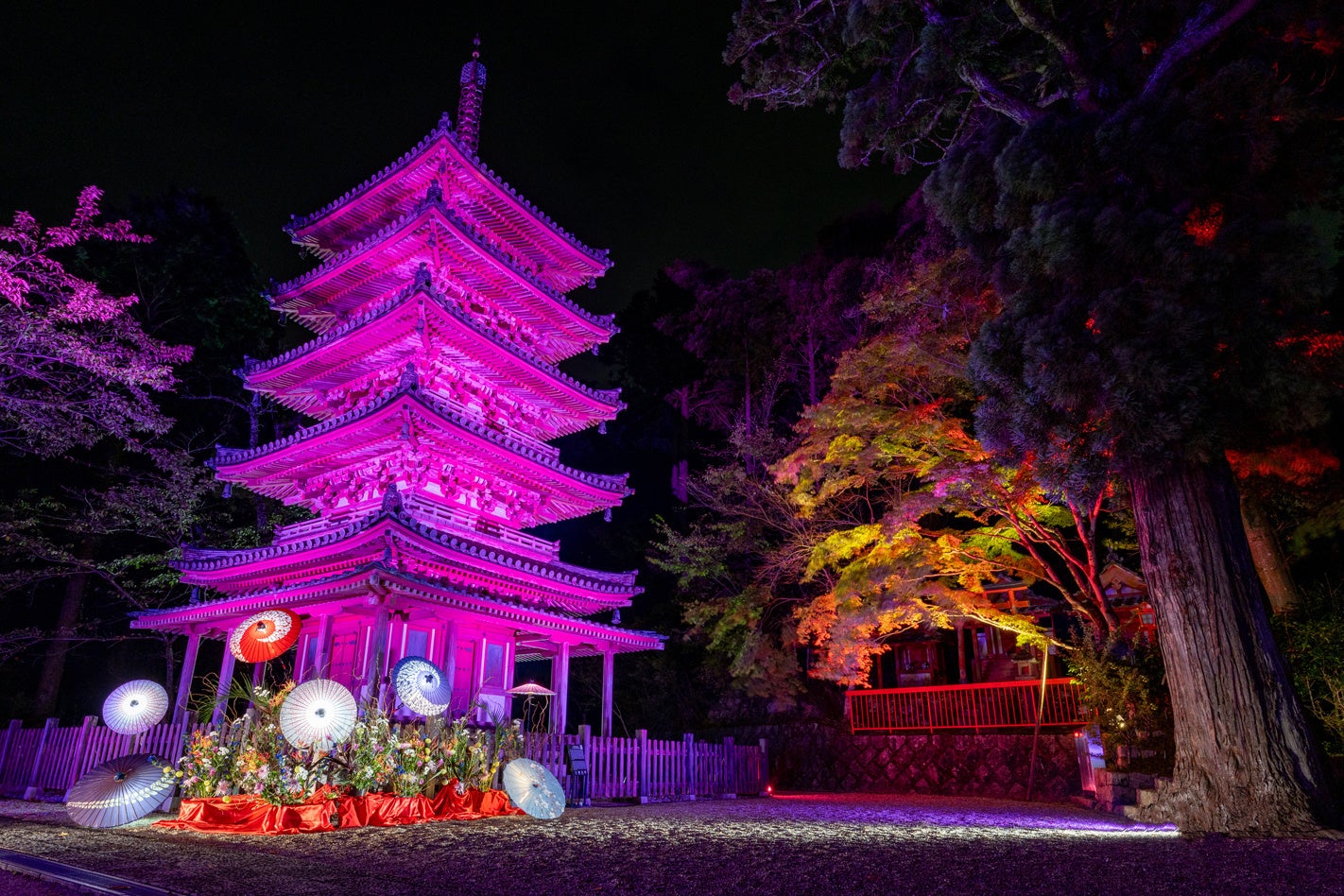 「和」をテーマとしながら、幻想的な雰囲気を味わえるライトアップです。