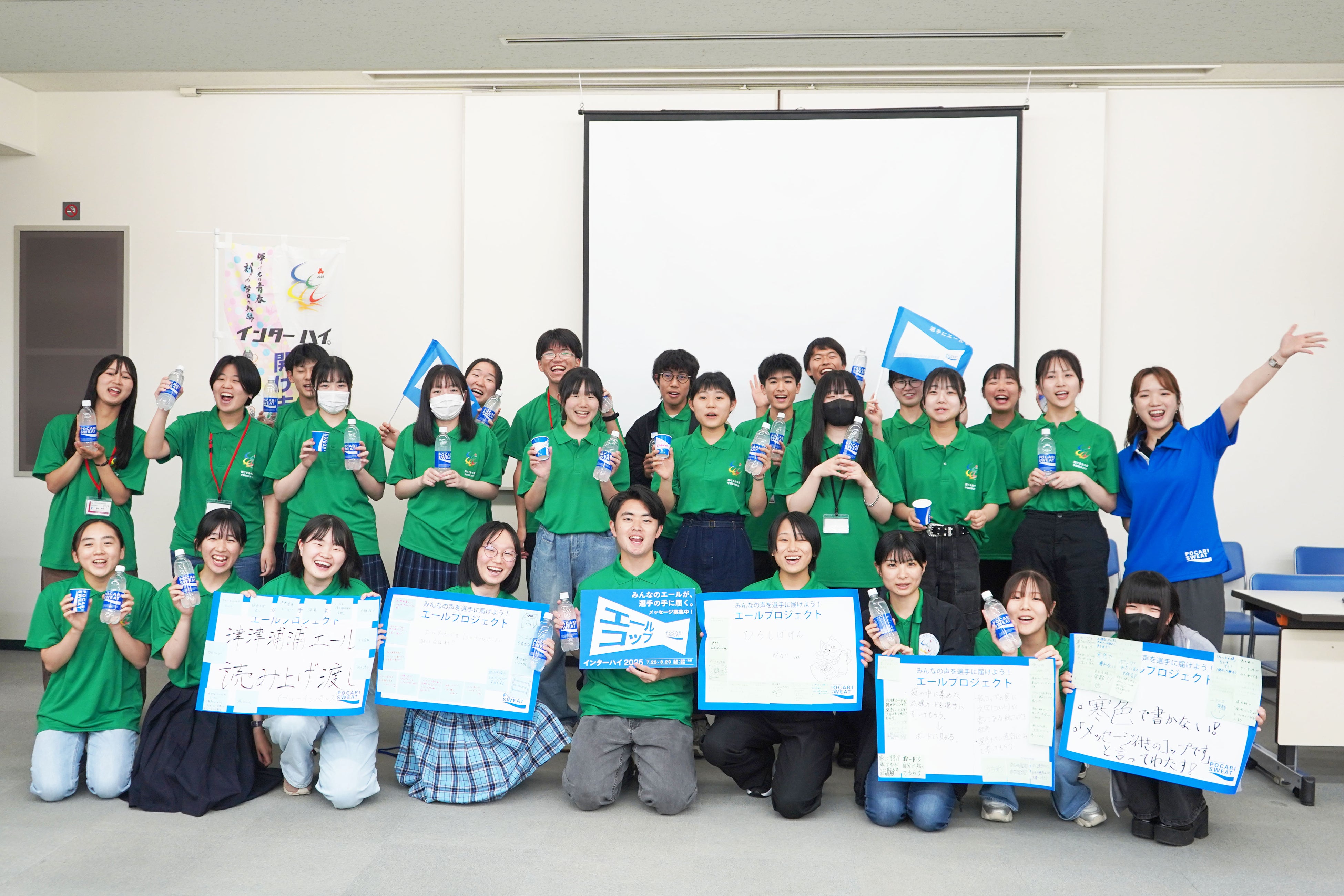 今年はこの「インハイエールプロジェクト」を、大会を支える高校生とともに創り上げていきたいという想いのもと、インターハイ開催前からこの大会を成功させるために企画・準備・運営など多様な活動に取り組む各開催地の高校生で構成される高校生活動推進委員会とも連携しました。“どのようにすれば選手にエールを届けることができるか”を考えるワークショップ「エール会議」の開催や、“エールコップ”に貼り付ける応援メッセージを学校や地域のみなさんから集める等の活動を行っています。