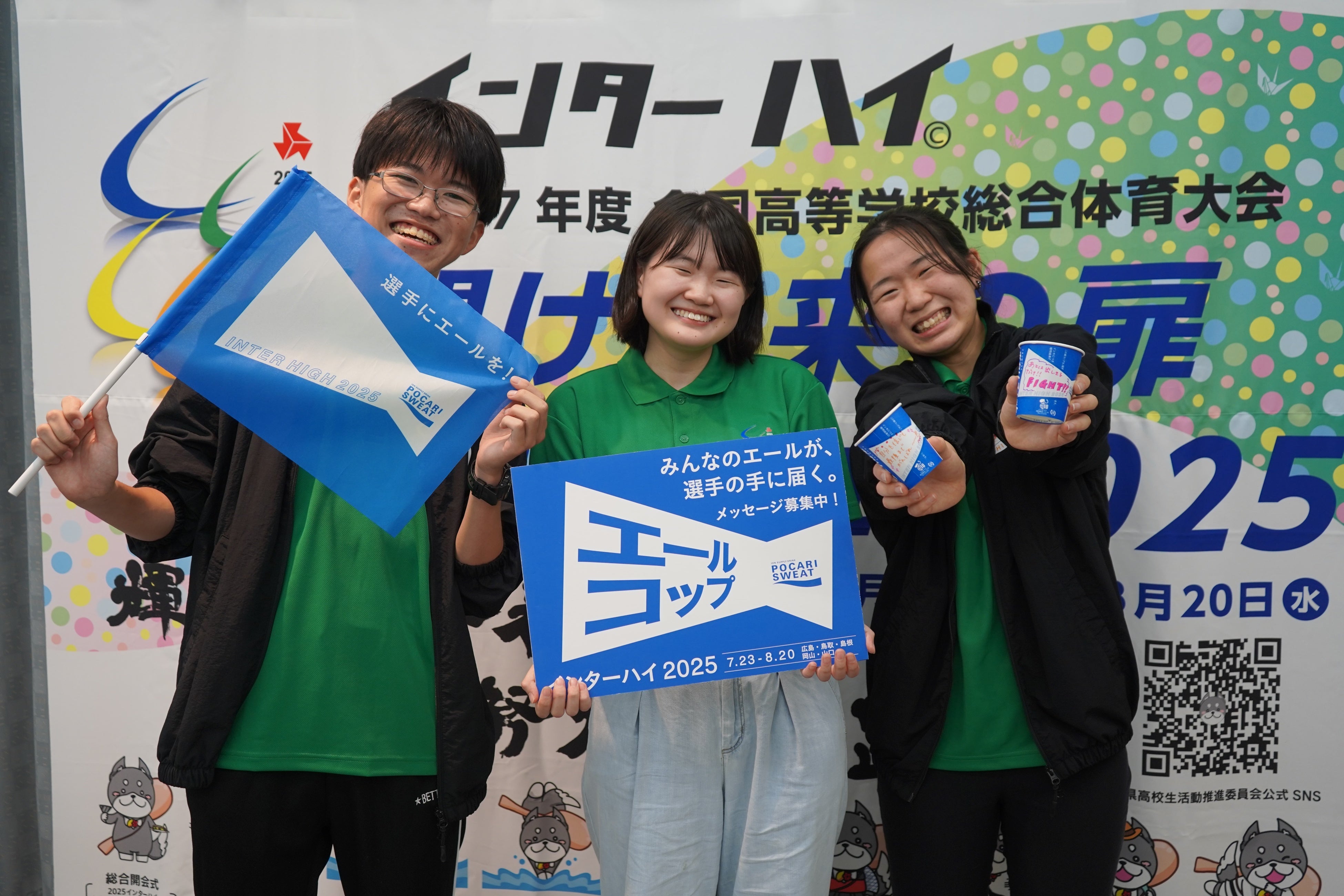 7月24日(木)に総合開会式を迎えたインターハイ。大会当日、選手にポカリスエットとともに地域の方々や大会を支える高校生サポーターの手書きのエールメッセージを届ける“エールコップ”は、いよいよ7月25日(金)の陸上競技から選手のもとに届けられます。その他、特別ムービー&ポスターによる応援や大会をサポートする高校生に発行されるNFT(デジタル活動証明書)など、高校生の夢の舞台であるインターハイのサポートを続けていきます。