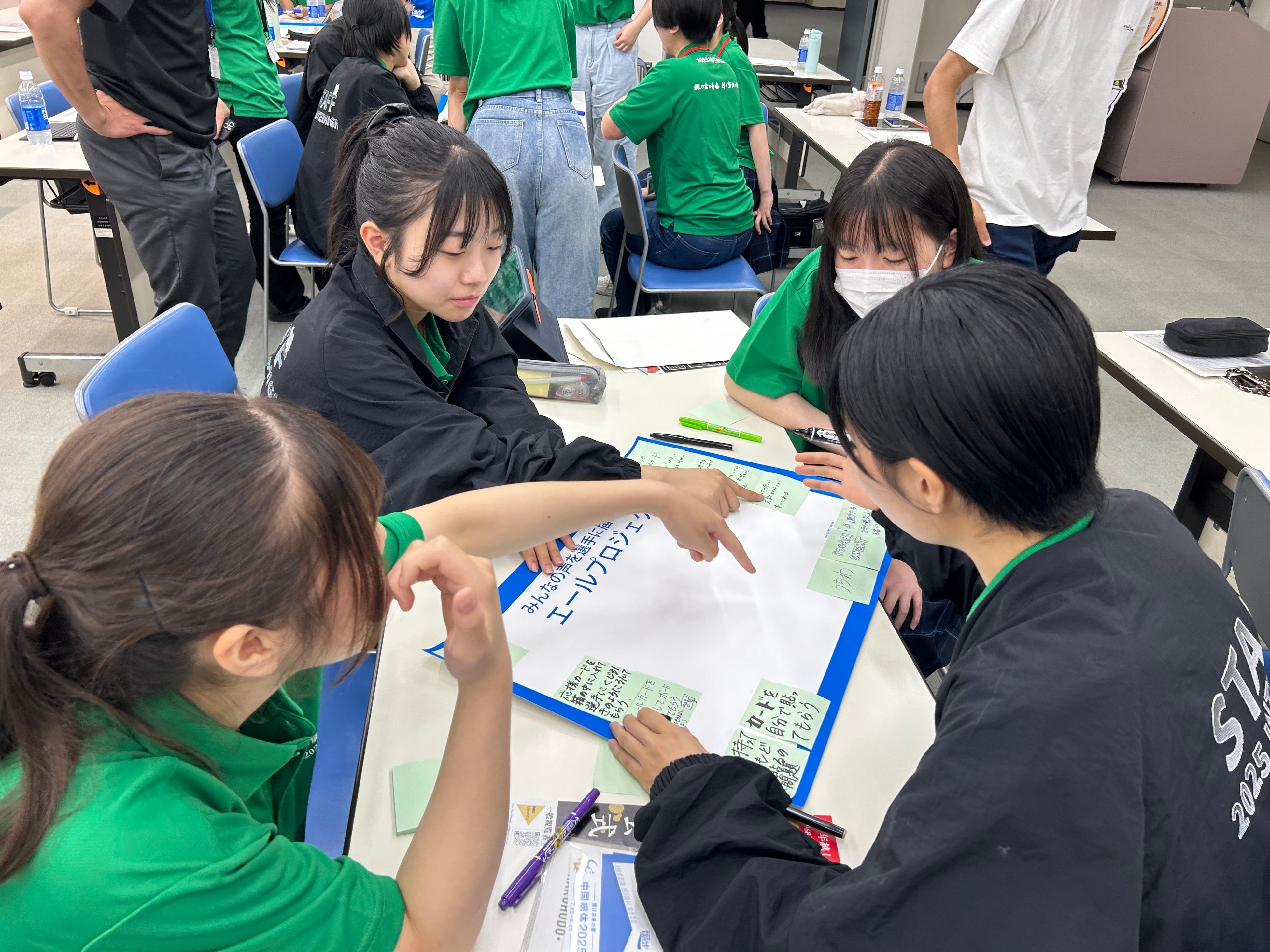 また、広島県高校生活動推進委員の高校生と、“どのようにすれば選手にエールを届けることができるか”を考えるワークショップ「エール会議」を開催するなど、開催前からこの大会を成功させるために企画・準備・運営など多様な活動に取り組む高校生たちとともに、インターハイ開幕まで“エールコップ”の準備を進めてきました。