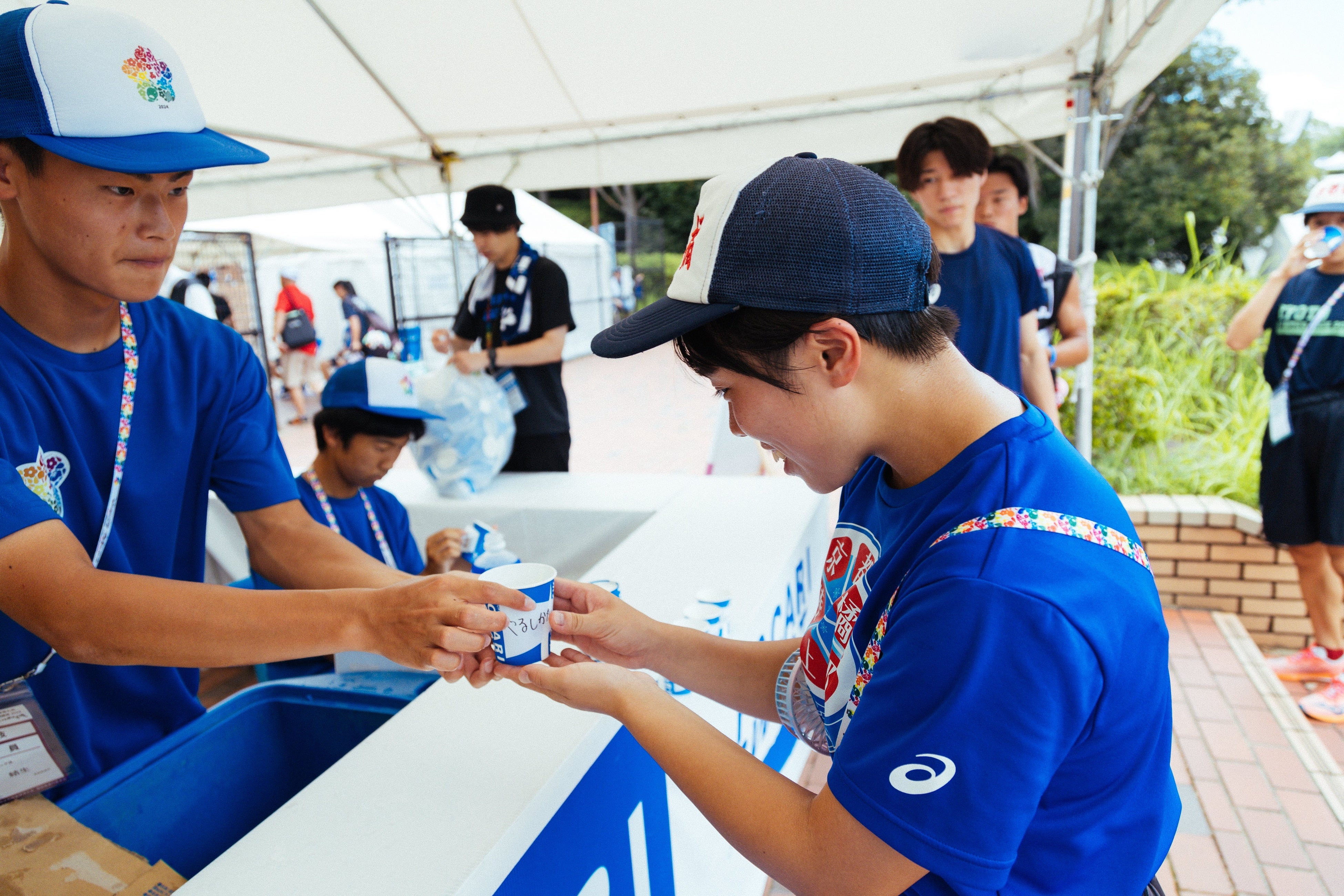 地域の方々や大会を支える高校生サポーターのエールを、ポカリスエットとともに“言葉”でも選手に届けたいという想いのもと、大会当日に「メッセージ入りの紙コップ“エールコップ”」で選手にポカリスエットを提供します。