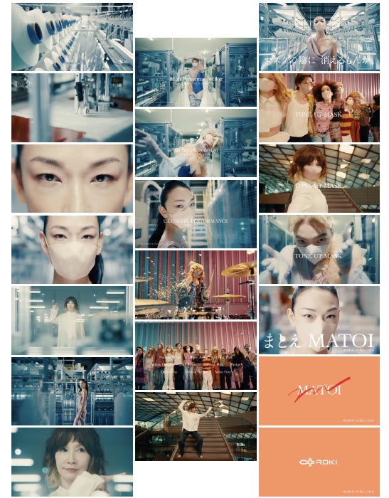 11月27日に販売する「MATOI TONE UP MASK」は、ROKIが誇る従来のフィルター性能や快適な着け心地に加え、「美」をテーマに顔の印象を引き立てる全10色のカラーや美しいシルエットでフェイスラインの補整による小顔効果を意識したデザインとなっております。本CMでは、ROKIマスクの先進的なデザインと高い機能性を視覚的に表現するためにモデルだけでなく俳優としても活躍する冨永愛さんをはじめ、YOUさん、アオイヤマダさん、10colorsが出演し、全6種類の映像で「MATOI TONE UP MASK」の魅力を伝えています。