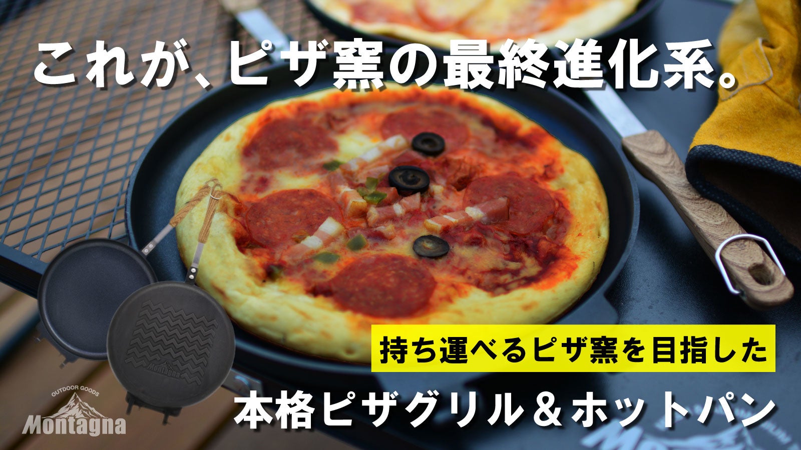 株式会社ハック(本社:大阪府東大阪市、代表取締役:有山哲也)が運営する、アウトドアブランド「Montagna(モンターナ)」は、2022年3月10日より、持ち運べるピザ窯を目指した『本格ピザグリル&ホットパン』をクラウドファンディングサイト「Makuake(マクアケ)」で先⾏予約販売します。社内随一のピザ好き社員が「ピザ窯」を求めて試行錯誤して完成させた本製品は、ピザの為に作り込まれた設計と多彩な機能性で、キャンプやアウトドアシーンで大活躍。