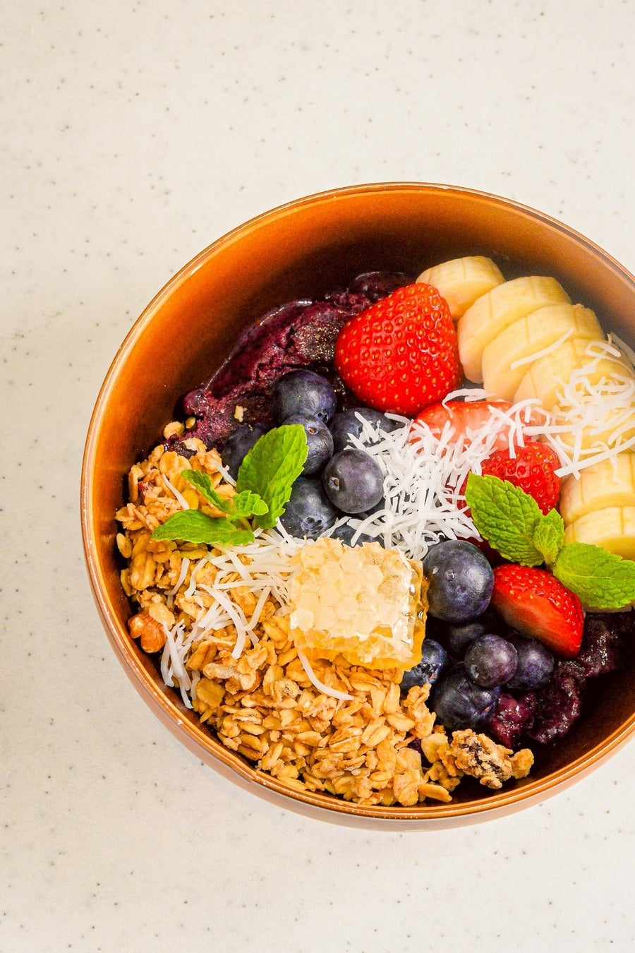 アサイーベースに、グラノラ、フルーツ、ナッツ、チアシードやコムハニーなど、20種類以上のトッピングから選んでいただき、オリジナルボウルを完成させていただきます。