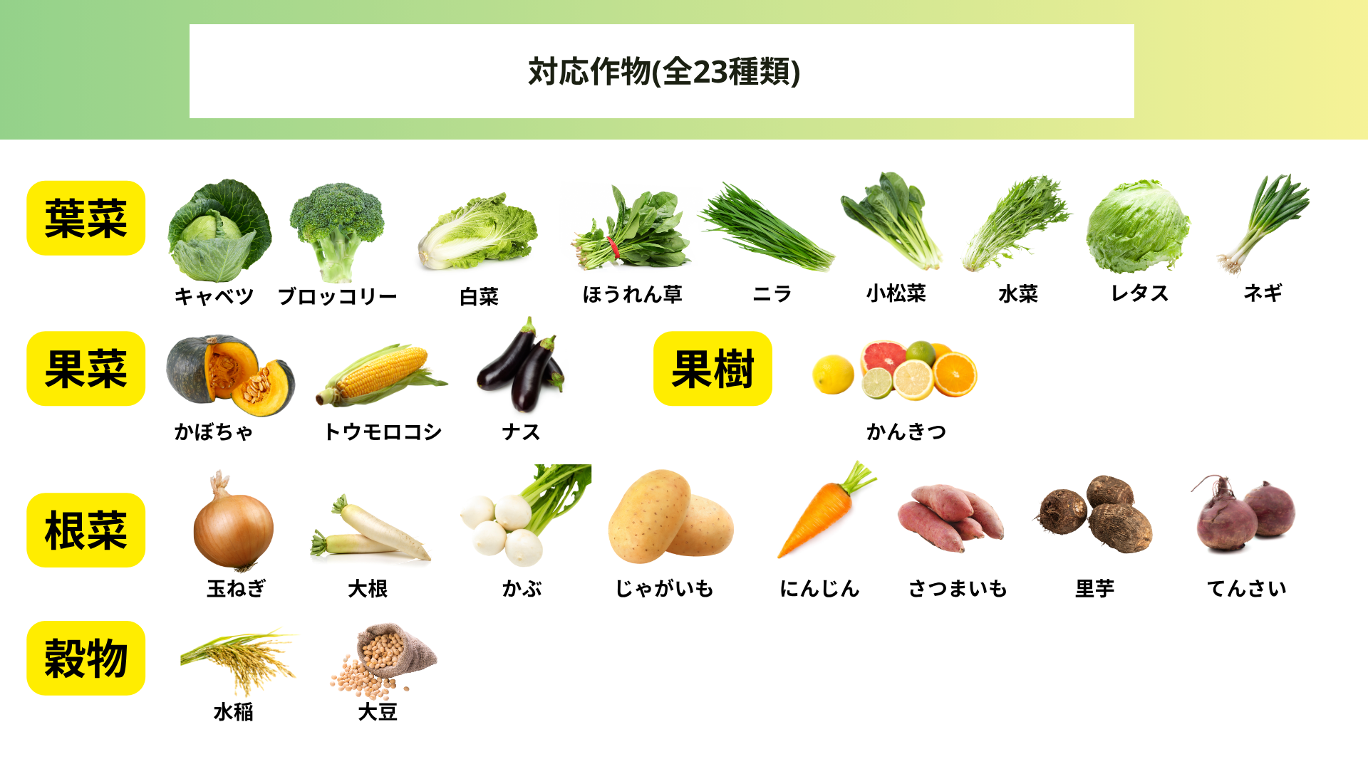 TENRYOの大きな進化のひとつが、対応品目数の拡大です。2024年のサービス開始当初から着実に対応作物を広げ、昨年春の9品目から今春には23品目(キャベツ、ブロッコリー、タマネギ、水稲、柑橘類など)へと大幅に拡張されました。