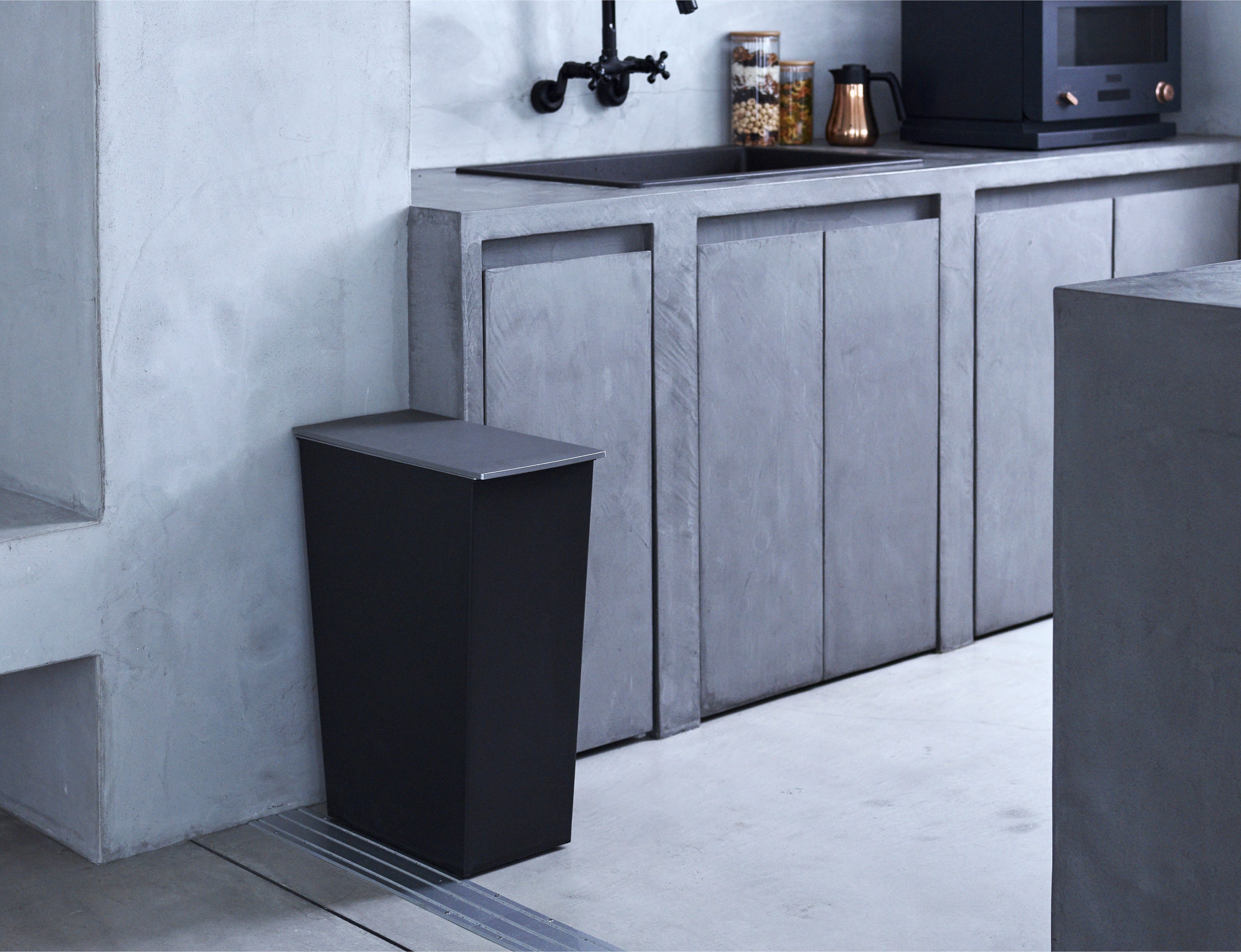 『kcud(クード)』はシンプルなデザインと機能性を兼ね備えたダストボックスで、2003年の発売から20年を迎えました。このたびインテリアショップのACTUS(アクタス)とコラボレーション。シリーズのなかでもスリムでスッキリとしたデザインの『クード シンプルスリム』を、素材感に特徴のある3色で展開します。
