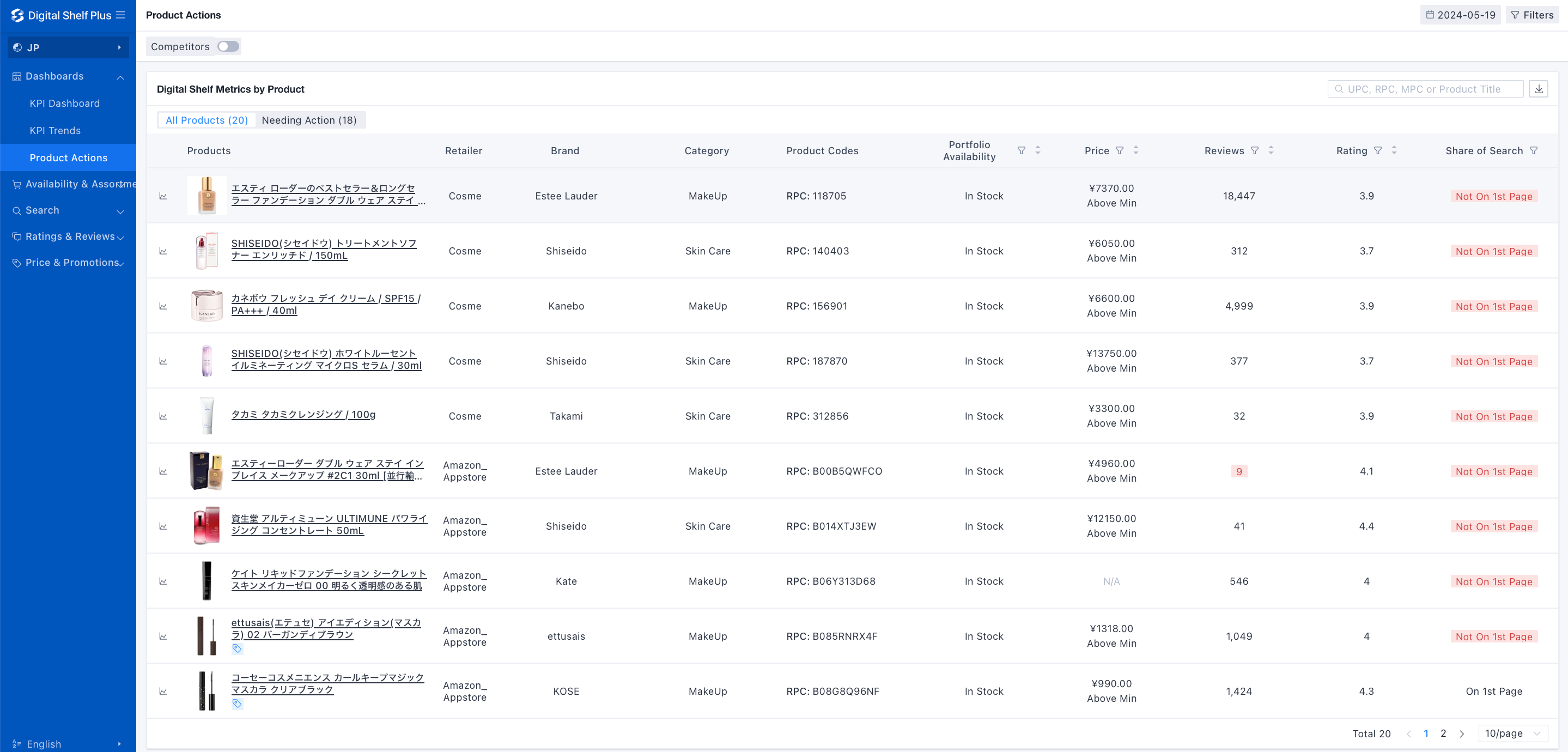 「Digital Shelf Plus」は、直感的で見やすいダッシュボードを通じて、デジタルシェルフを効果的に管理することで、売上を大幅に向上させる可能性を秘めています。例えば、SKUの在庫切れを防ぐことで日々の売上損失を軽減し、適切な検索順位を維持することで顧客の目に留まりやすくなります。また、コンテンツの正確性とプロモーションの効果をモニタリングすることで、売上とシェアを向上させることができます。