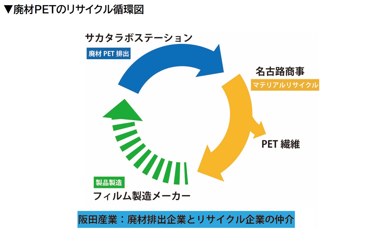 当社は、印刷やパッケージ産業における廃棄物の再資源化に向け、現在、国内4工場での実証実験を進めています。実証実験を進めるにあたり、廃棄物の素材ごとに適したパートナーの選定を進めるなかで、6月に発表した金属スクラップ、8月に発表した廃インキ等の廃液に引き続き、グループ会社のサカタラボステーションおよび阪田産業と、名古屋にある梱包材料のリサイクル専門商社である株式会社名古路商事が協業して、サイン&ディスプレイの加工工程で発生するPET廃材の再利用化に向けた取り組みを開始することといたしました。