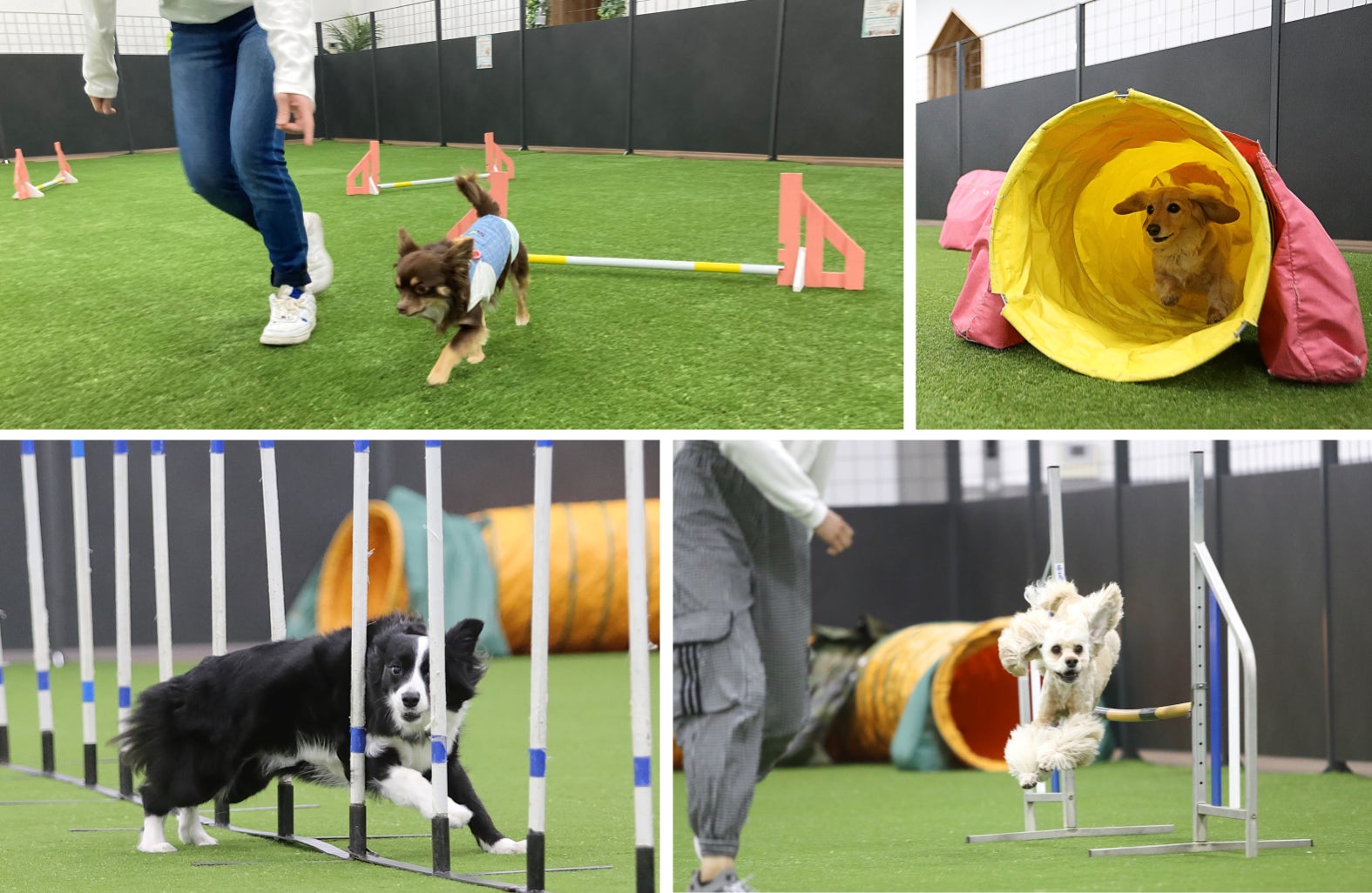 今年5月にオープンしたグリーンフィールド天王寺の日本最大級の屋内ドッグランでは、このアジリティーを始めとする様々なドッグスポーツを提案しています。