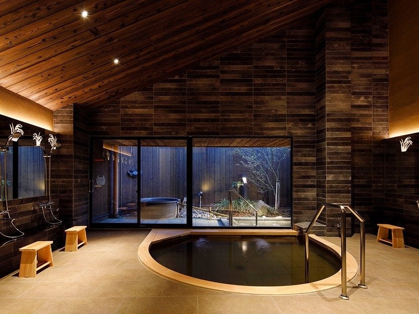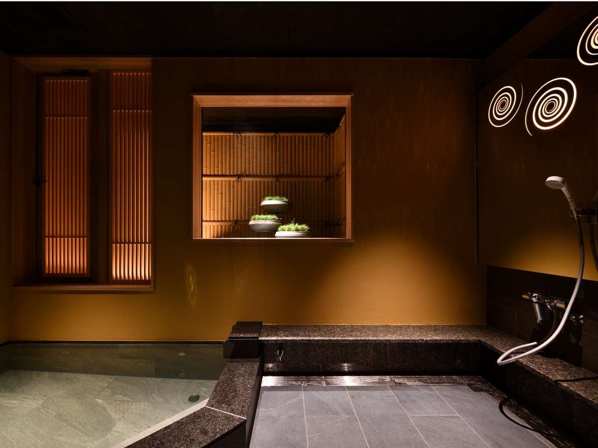 天然香住温泉を源泉とし、モダンな和の空間の中に銀引きで香住の海をイメージしたデザインを取り入れています。同室にあるドライサウナと併せて使って日々の疲れを癒すことができます。