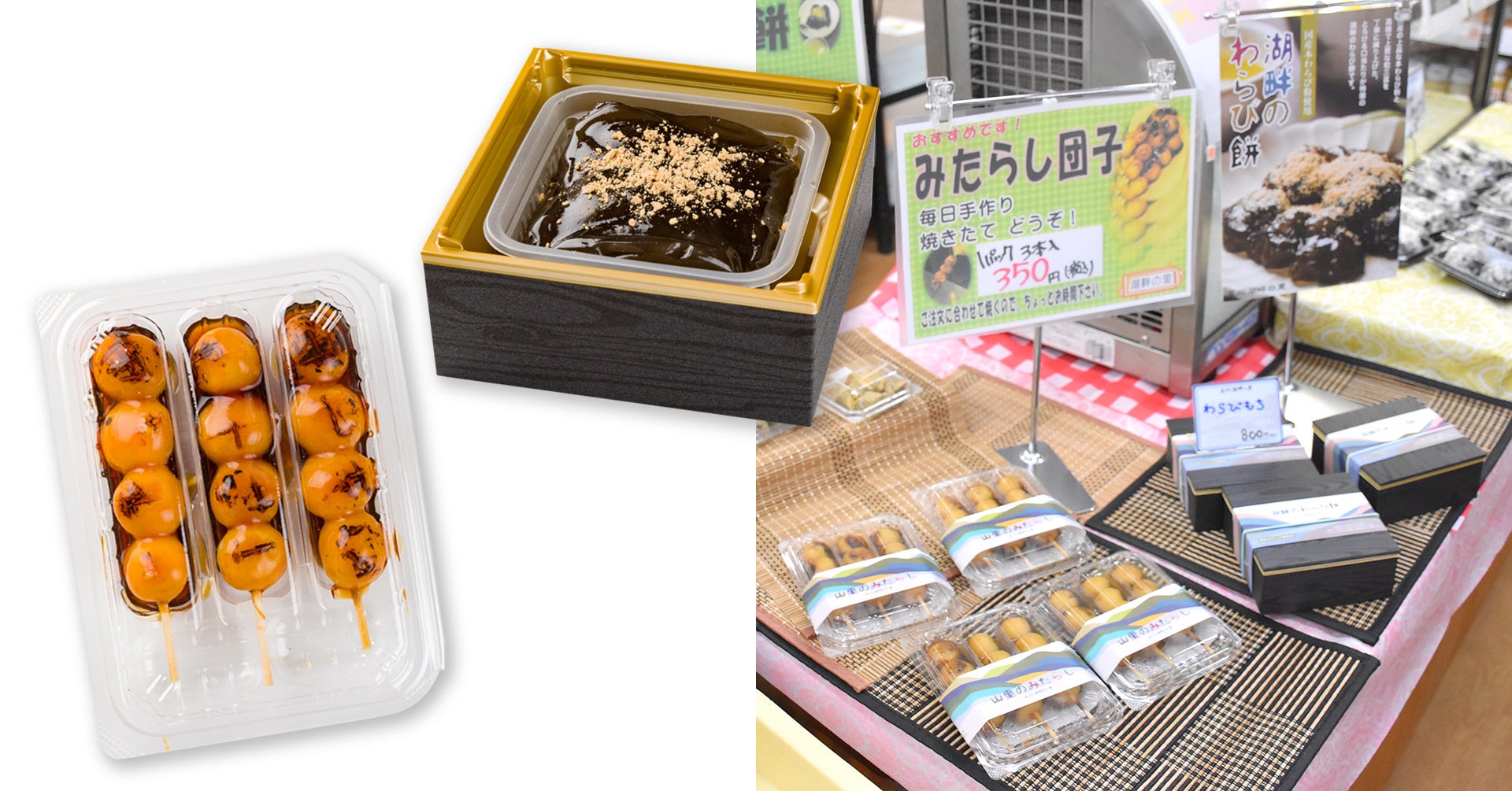 「山里のみたらし」と「湖畔のわらび餅」を店内製造