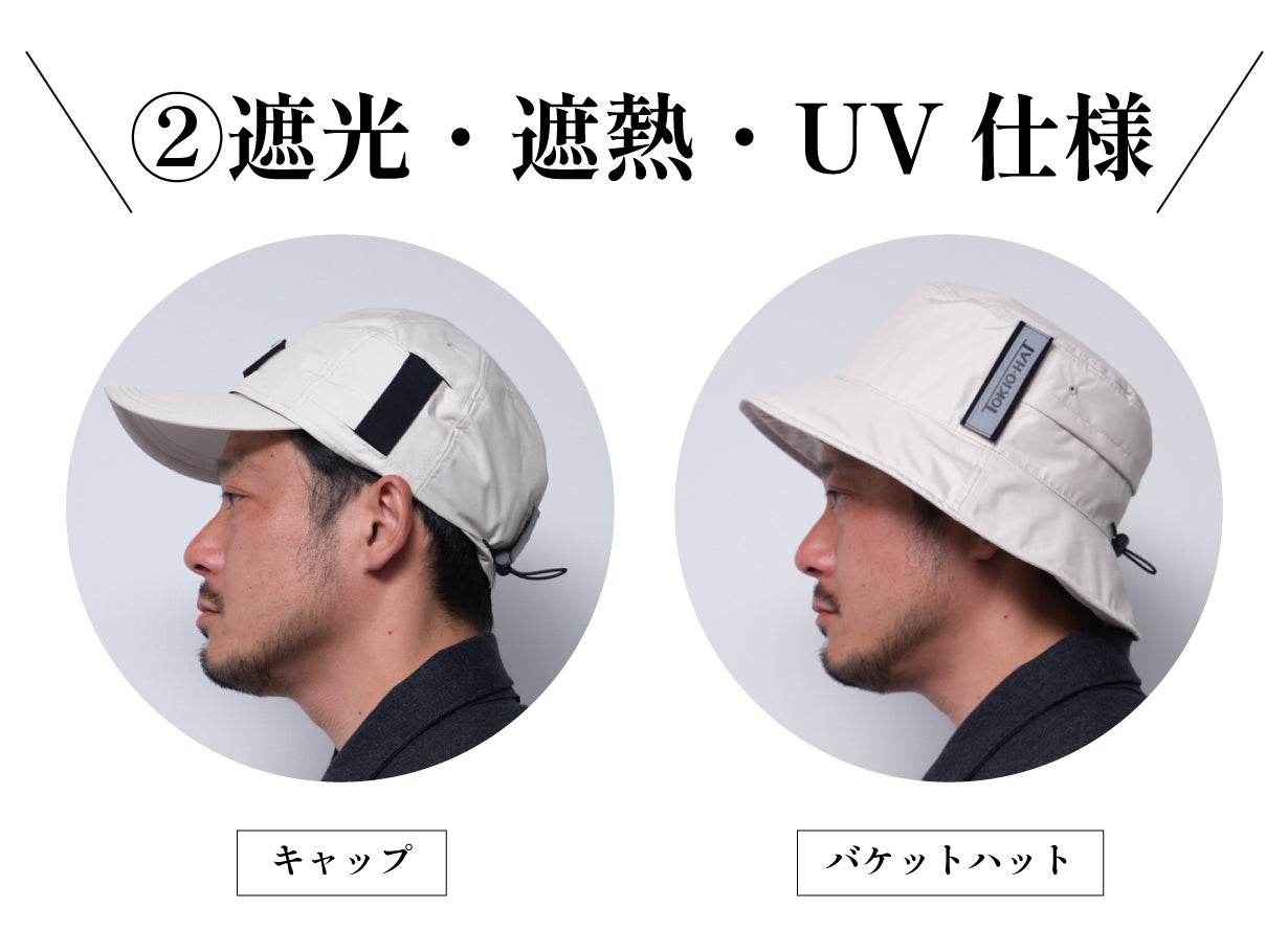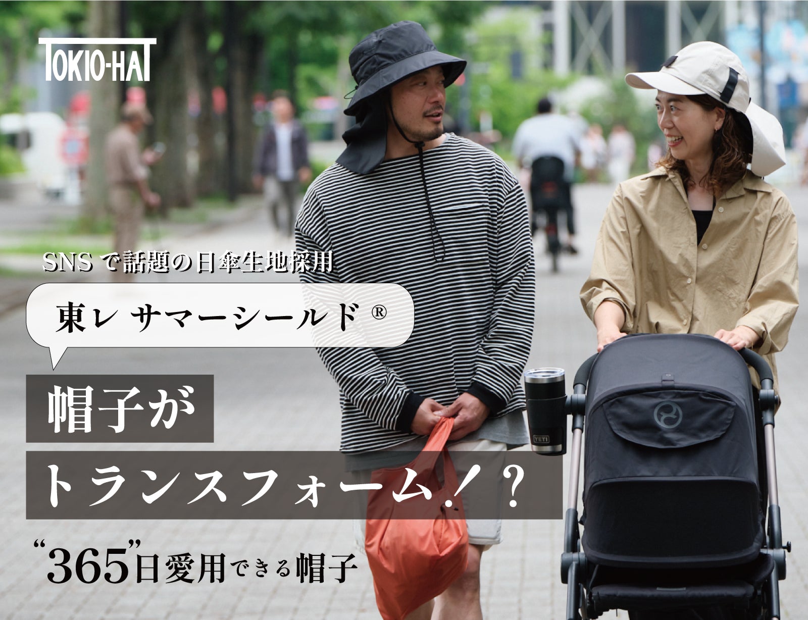 SNSで話題の日傘生地「東レ サマーシールド®️」を採用し、熱・光・紫外線から守る!季節・天候に合わせてトランスフォーム(変身)する帽子