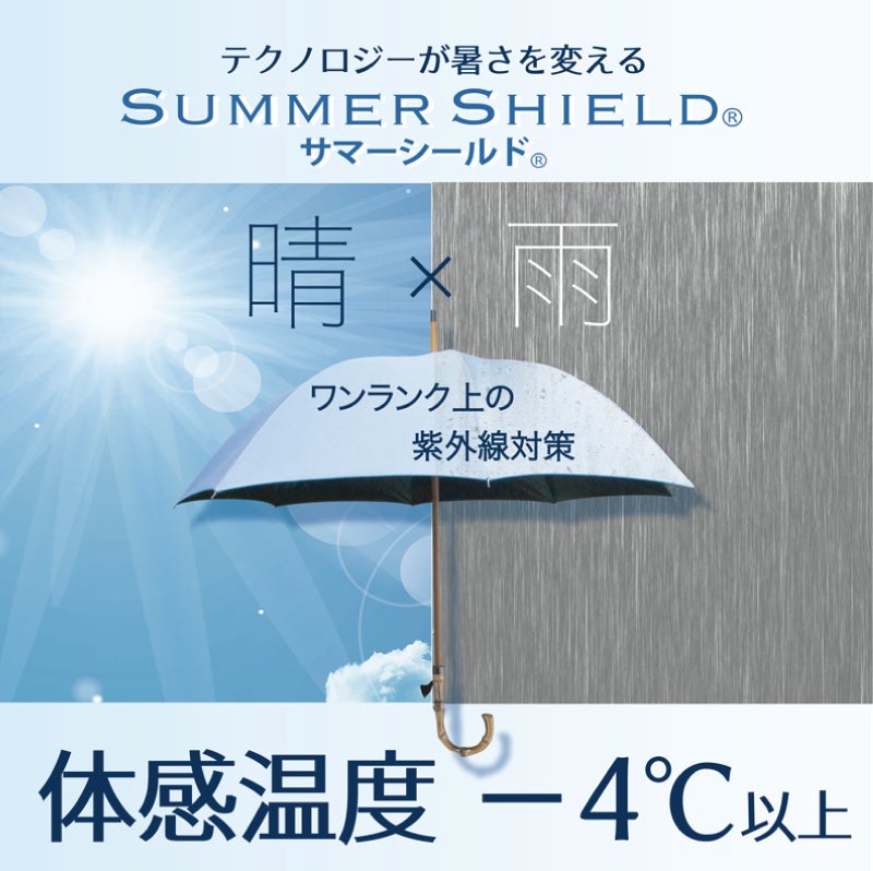 紫外線カットはもちろん、熱中症対策などにも最適な素材、『東レ サマーシールド®』生地を採用。体感温度マイナス4℃以上の効果で、遮熱効果に優れ、暑さに負けない快適な毎日のための必需品。遮光率99.99%以上、UV遮蔽率99%以上、雨にもご使用いただけます。