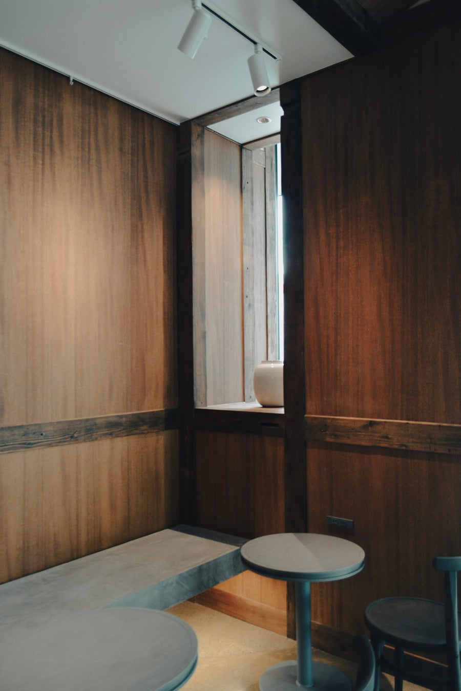 武蔵國珈琲の店内はグレーと木を基調としており、古民家のような古き良き空間を感じさせつつも現代的で洗練されている空間です。コンセント付きのカウンター席やゆったりと過ごせる席など、様々なお席をご用意しており多くの人々が集まって居心地良く過ごせるカフェとなっています。