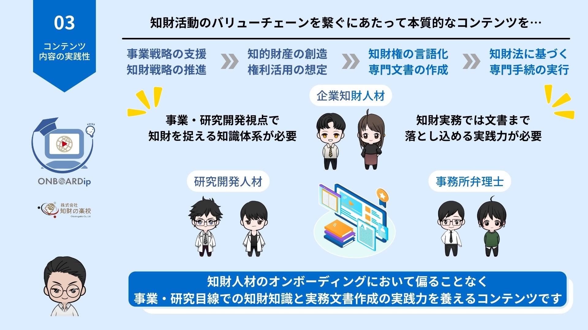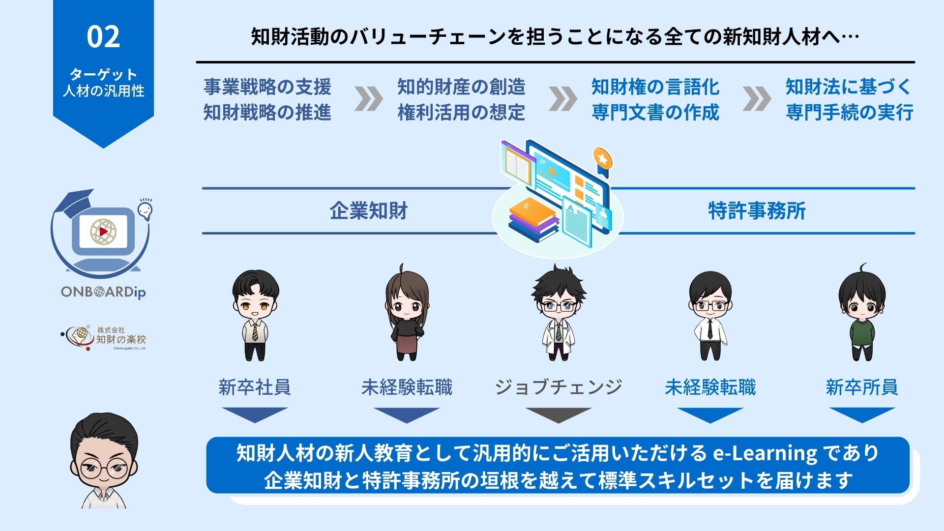 新サービス!知財人材のオンボーディングに特化したe-Learning「オンボードアイピー」のご案内