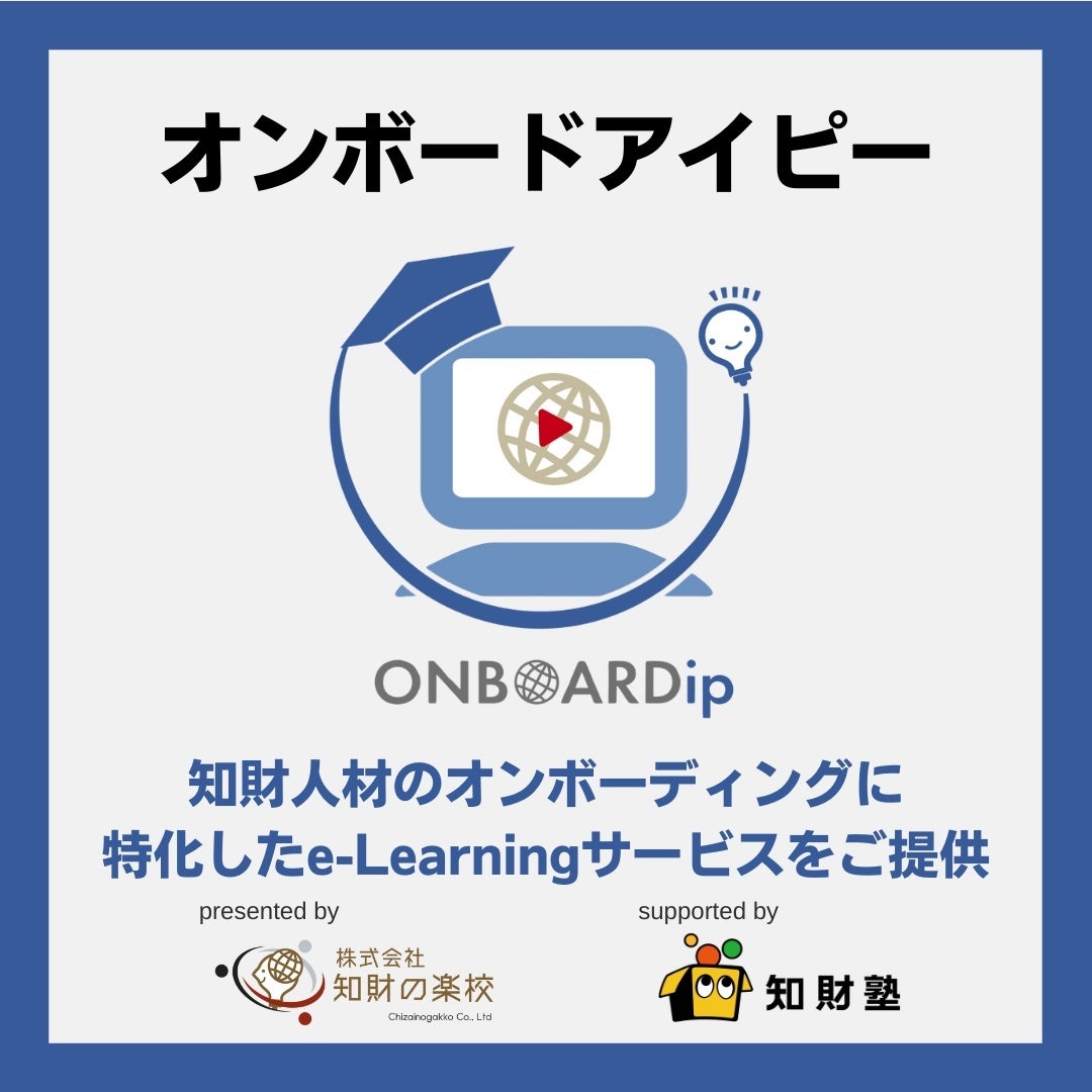 株式会社知財の楽校(本社:千葉県千葉市、代表取締役:玉利泰成)は、株式会社知財塾(本社:東京都港区、代表取締役:上池睦)とのアライアンスで、知財人材のオンボーディングに特化したe-Learningサービス「オンボードアイピー(ONBOARDip)」を2024年10月1日(火)からオープンします。9/30までの先着限定でプレミアムIDの予約受付を開始しましたので、お知らせいたします。