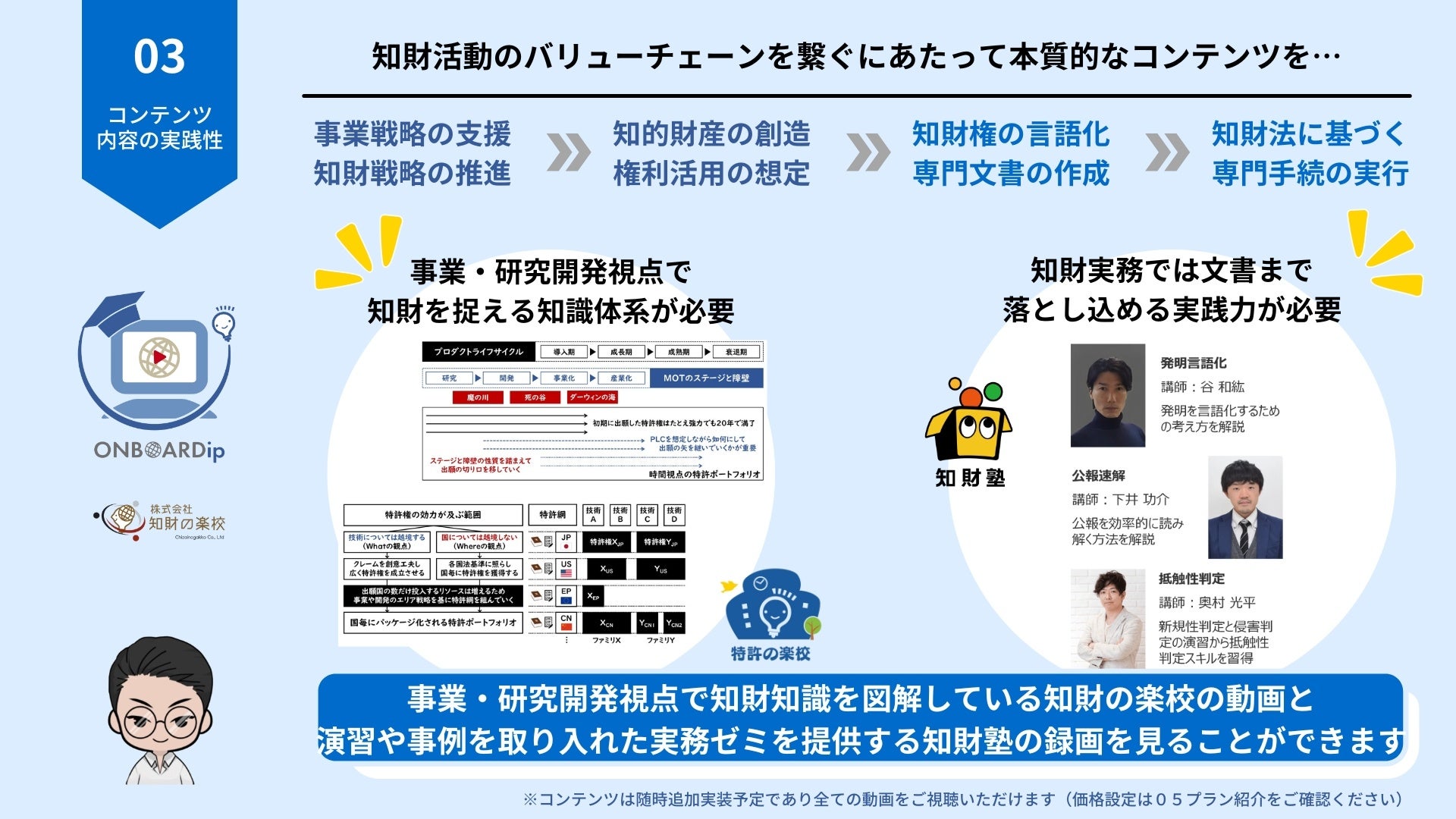 知財現場経験をもとにした実践的なコンテンツをご提供