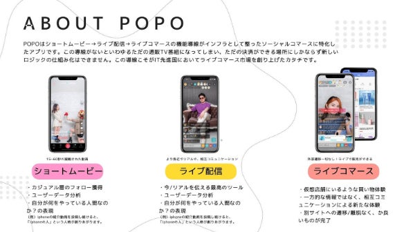 ショートムービー機能を搭載したライブコマースアプリ『POPO(ポポ)』ウェブサイト: