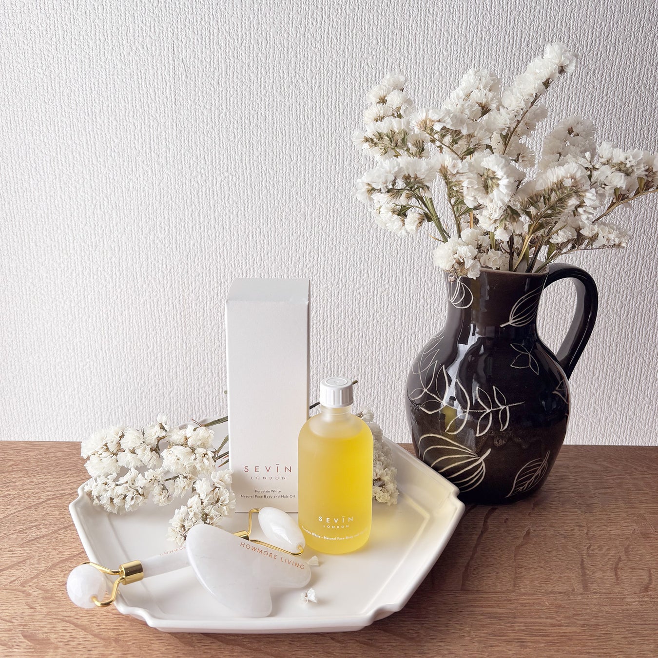 【HOWMORE LIVING/白翡翠カッサ&マッサージローラー & SEVIN London/Face, Body & Hair Oil 100ml】