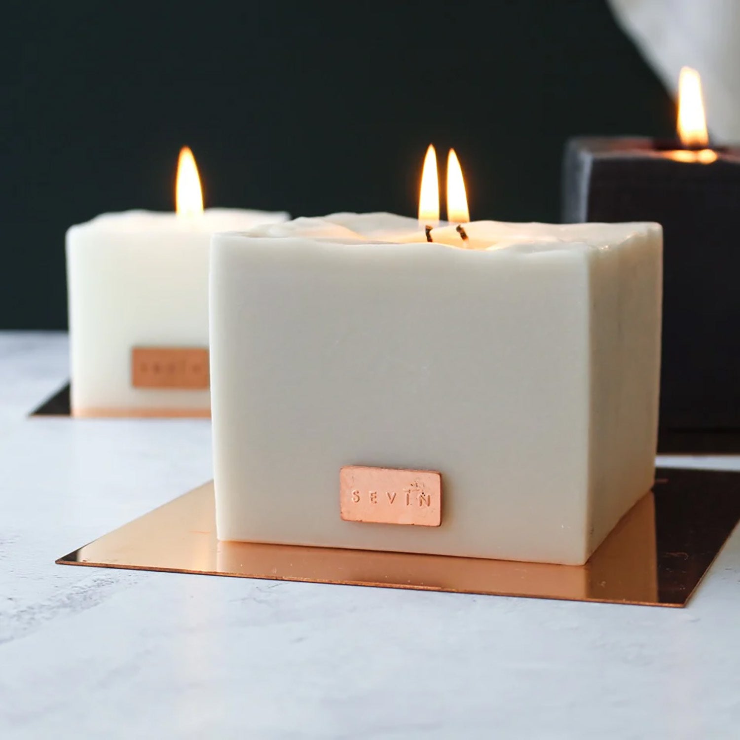 英国で一つひとつ丁寧に手作業で作られているキャンドルは、サステナブルな植物由来のソイワックスをベースに、クリーンな燃焼を促すようコットンウィックを採用しています。彫刻のようなスクエアフォルムと、コンクリートのような質感をもつ耐熱性素材やメタリック素材のベースが特徴です。ヴィーガン対応・クルエルティフリーのエシカルなものづくりにもこだわっています。気分やシーンに合わせて、4種類の香りからお選びいただけます。